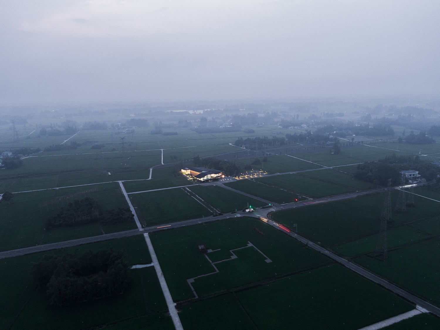 展示中心与周围民居因功能上的差异,建筑形态、门窗设置都有很大的差别。在昏暗之中,灯光从展示中心的落地玻璃透出,像一个灯塔照耀着茫茫万亩耕田。方圆两三公里范围内,它是这些村落里唯一的公共建筑,因此也成为周围居民的心中所向。