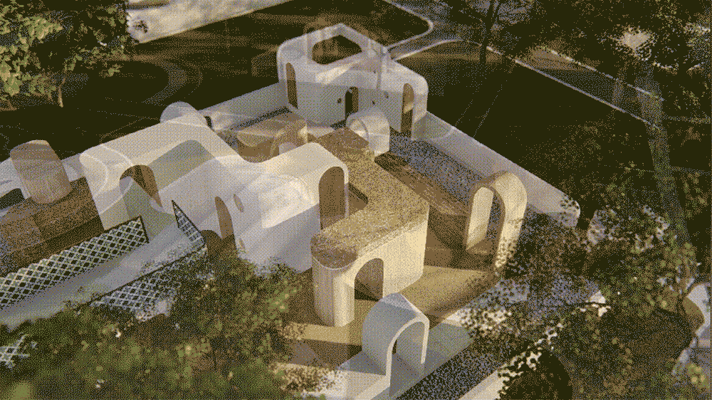 作为以儿童为核心打造的市政公共场所,围绕在书塔四周,巨人迷宫、蹦蹦云和夯土城堡依次展开。其中,位于东北角的巨人迷宫,将科技感与朴素感结合,以小小迷宫的形式呼应主体建筑有关童趣和探险的主题。