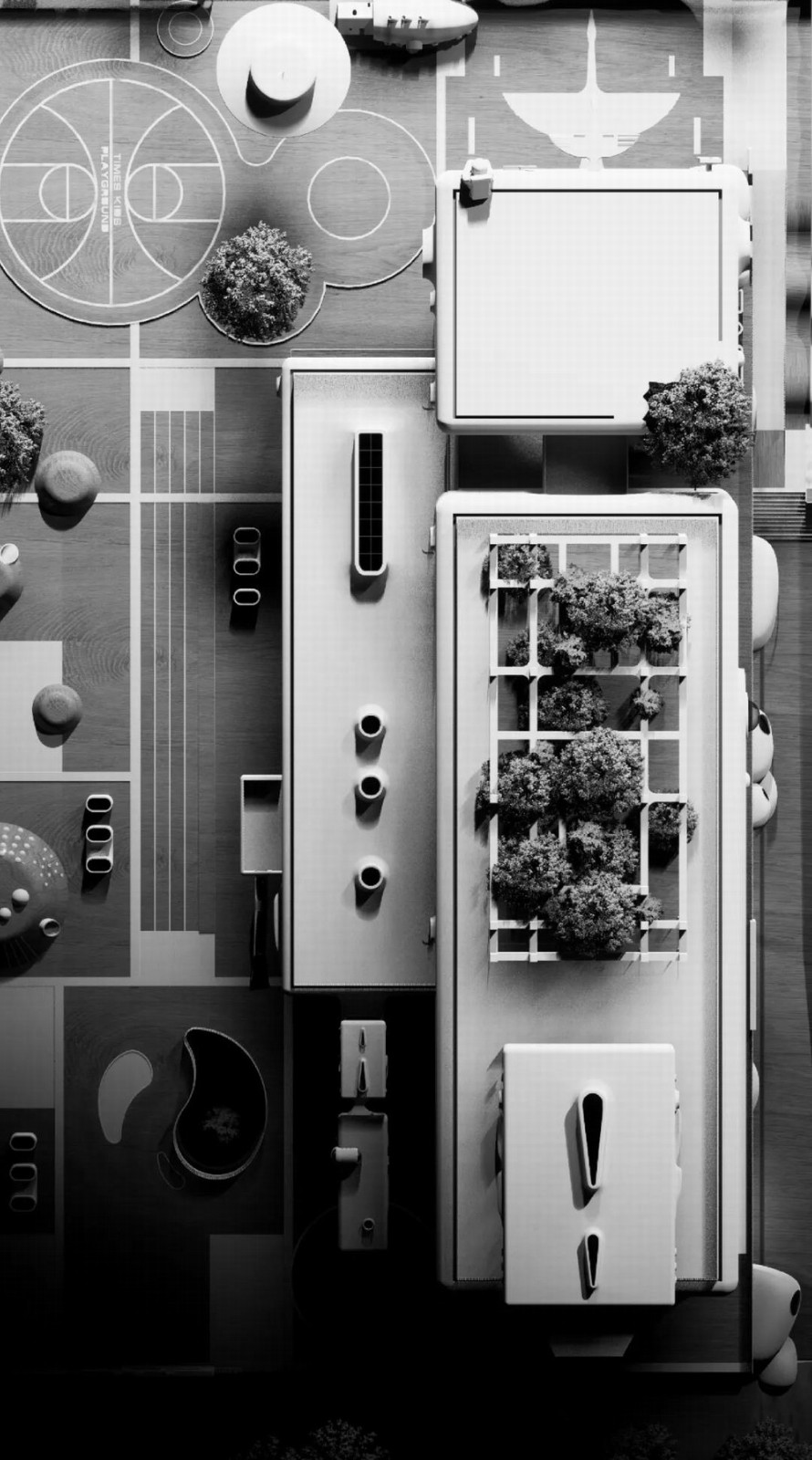 幼儿园是承载童年美好记忆的容器, 建筑以精神力量的形式「入侵」,使得心智空间拥有一个无限延伸的可能,它更像一种属性,不依赖于时间而存在。
