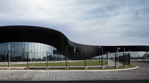 斯诺赫塔工作室(Snohetta)在中国成都为极星汽车品牌(Polestar)创建了一座电动汽车工厂,工厂四周是一堵黑色钢制的弧形长墙。