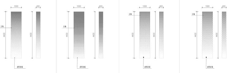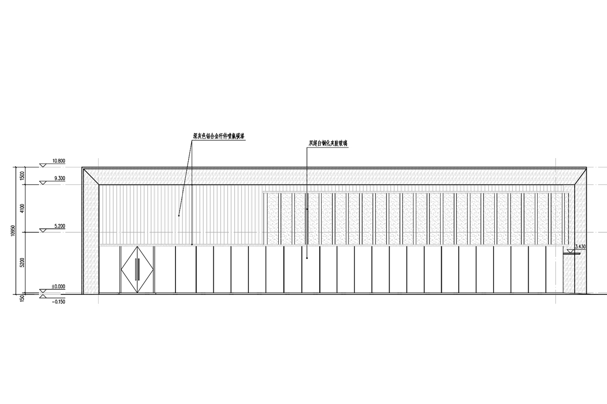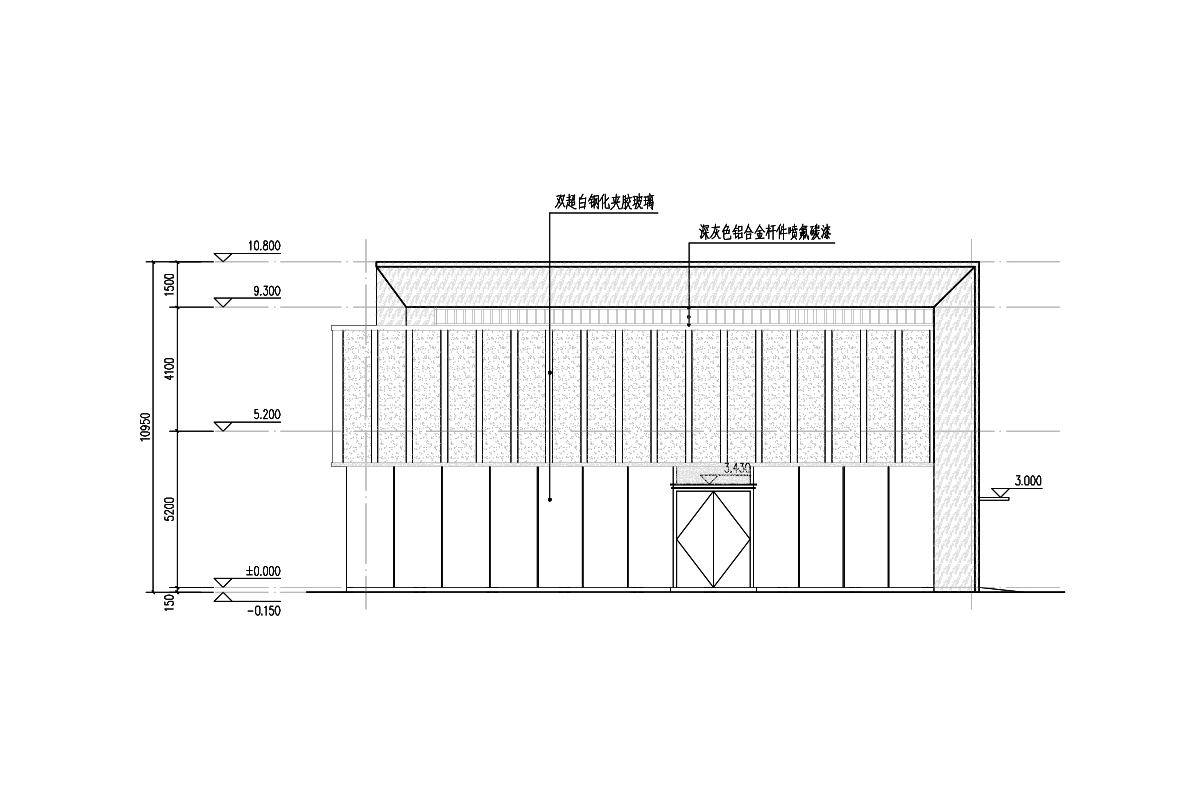 两层之间的深褐色铝板线条打破整体形态,折面白釉玻与通透超白玻整体外凸,分而不离。