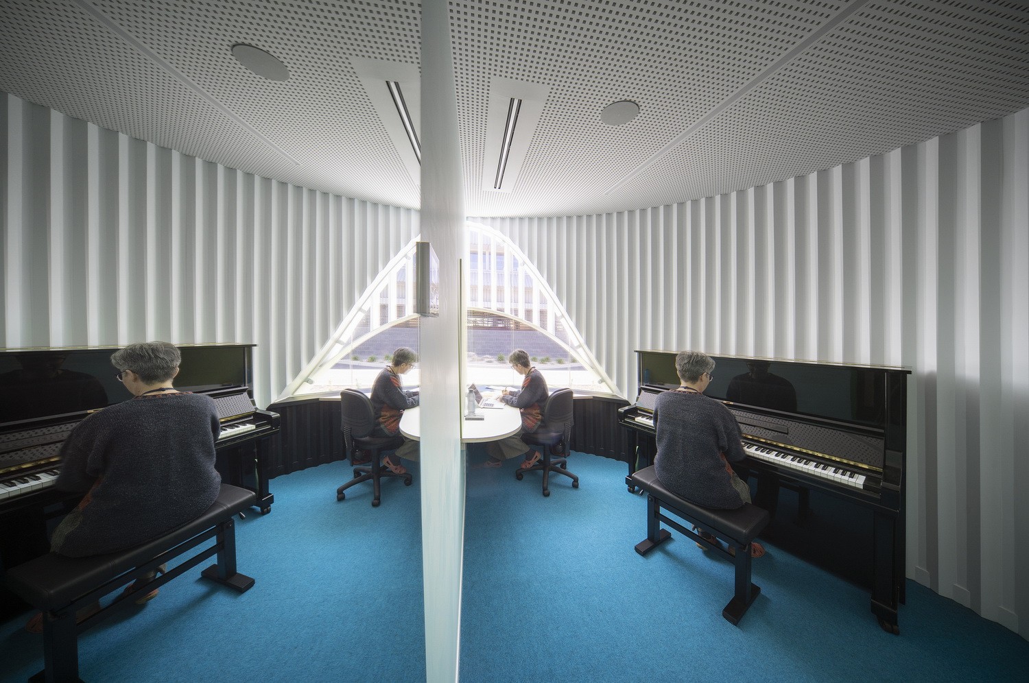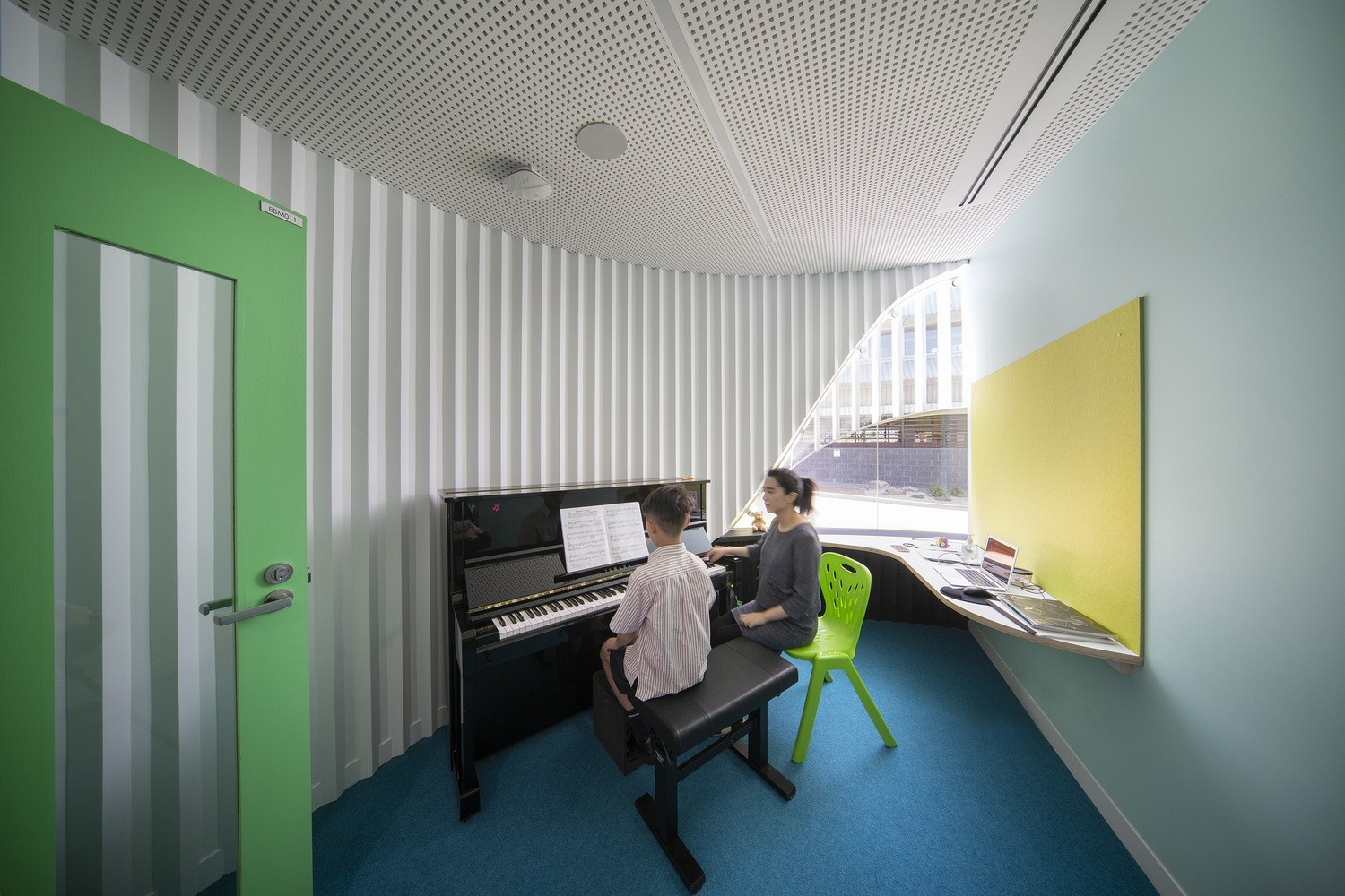 这三座建筑的结合带来了一加一大于二的效果。建筑的组合以及庭院这一第四元素的加入,给人一种一个小型社区的印象。新增加的音乐中心在调解2009年的建筑和维多利亚式房屋的形式感之间起到了作用。新建筑由不同大小的练习室组成,可以进行个人教学和集体练习。它还包括一个大教室,用于学习、教学,以及作为学生、家长和其他人的主要表演空间。