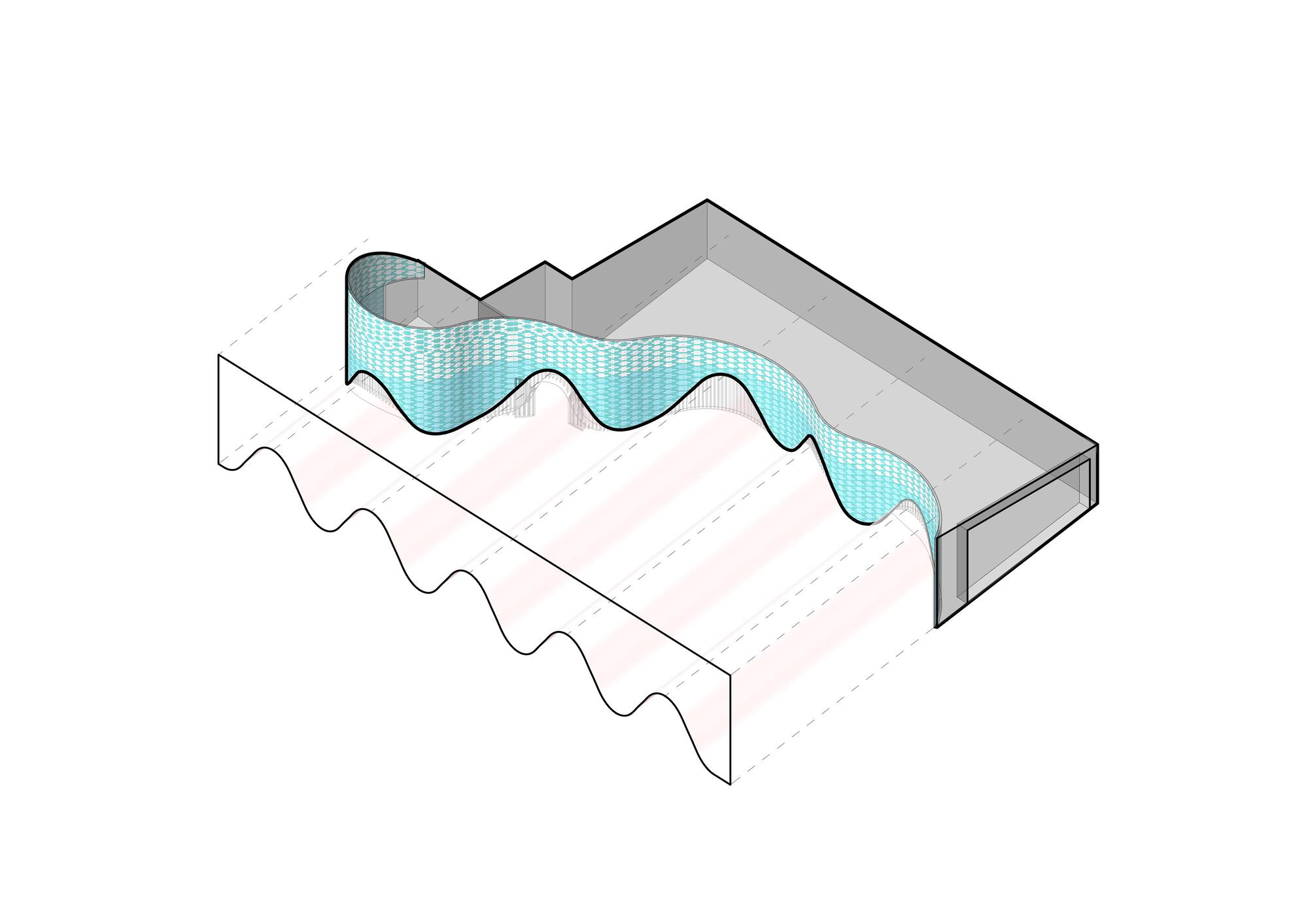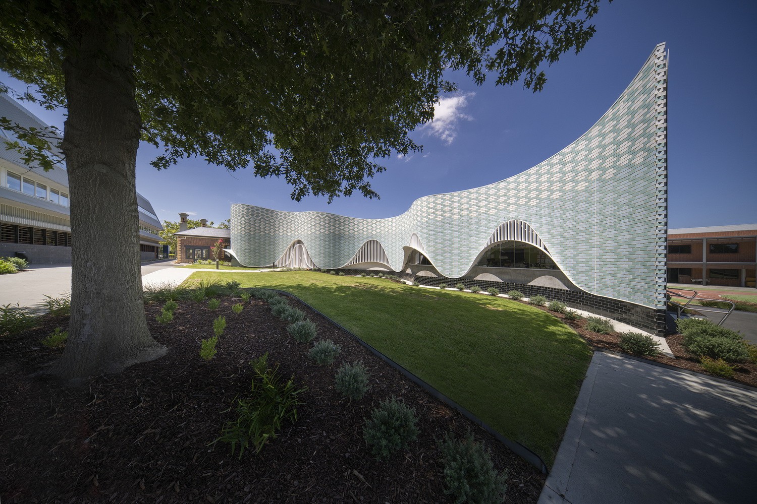 加建的部分具有“现代主义”学校建筑原型的所有基因,可以被视为整个校园内后来的机构类型的一部分。其展现的功能主义和现代主义来源于砖制坡屋的建筑,它附在形式上更复杂的历史建筑上,轮廓多变。南侧和西侧立面的框架式入口正展现了这种机构类型的起源。该建筑将一种俏皮的抒情手法应用于机构类型,它的主要形态——凝固的音波,穿过建筑的起伏平面,作为北立面的表达方式,框定了新的户外和表演空间。这个新项目延续了2009年建筑的主题灵感,是对文脉、美和想象力的一种思考。