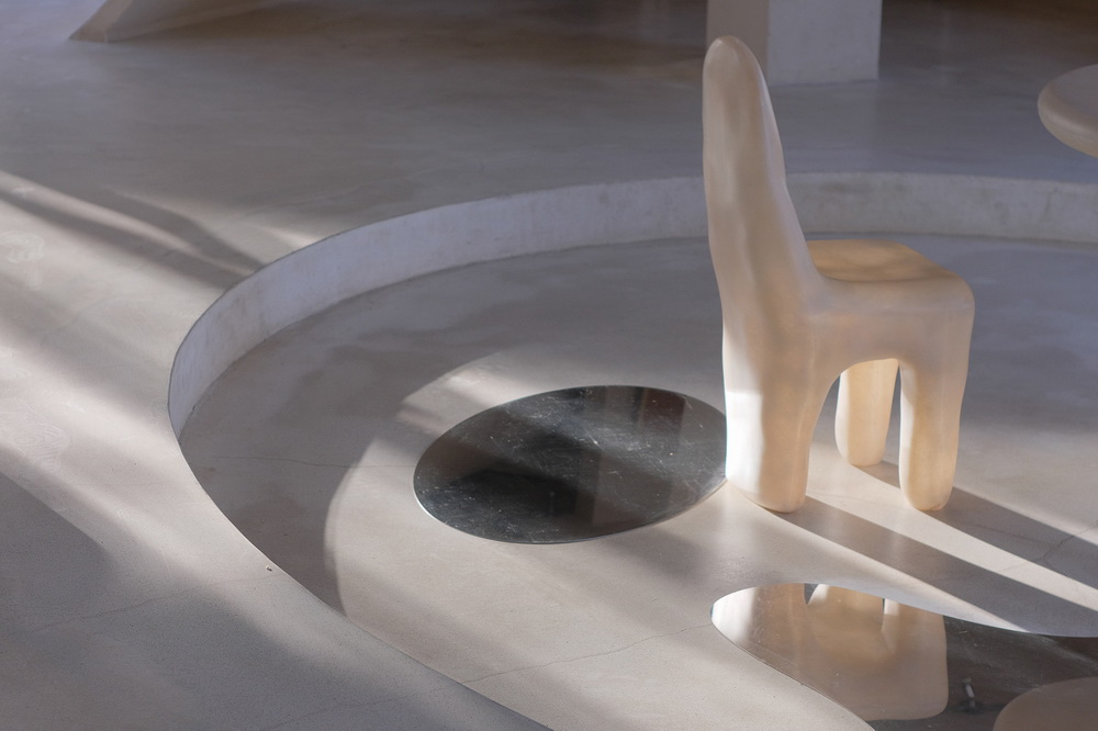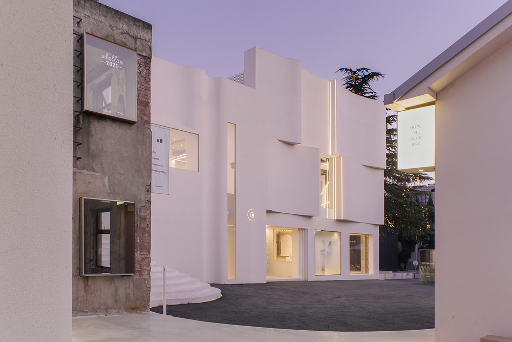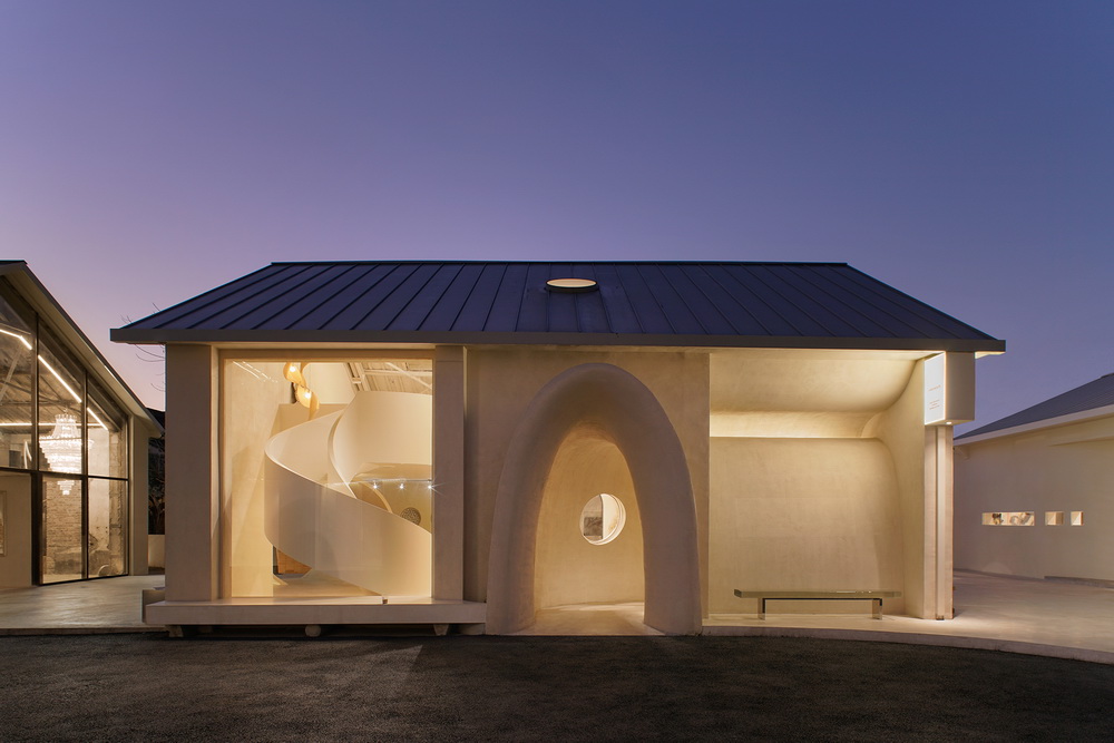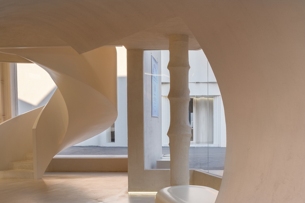 △买手店入口处的造型与室内旋转楼梯相呼应,柔软的曲线贯穿整个建筑 © yuuuunstudio