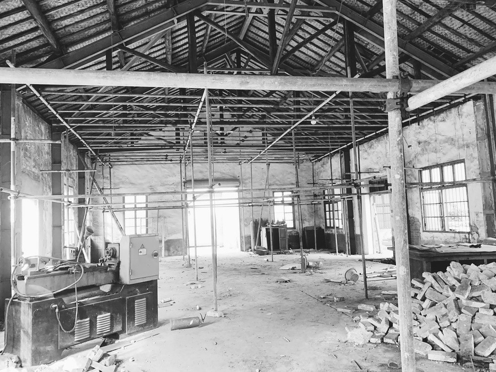 厂区内宿舍厂房等建筑自上世纪九十年代从未翻新,时间仿佛在这里停滞,每一段痕迹都承载着时代的烙印。我们修缮了保存尚好的建筑碎片,清理了无法修理的部分,加固了地基结构,整理保留出那个时代的大体建筑状态。