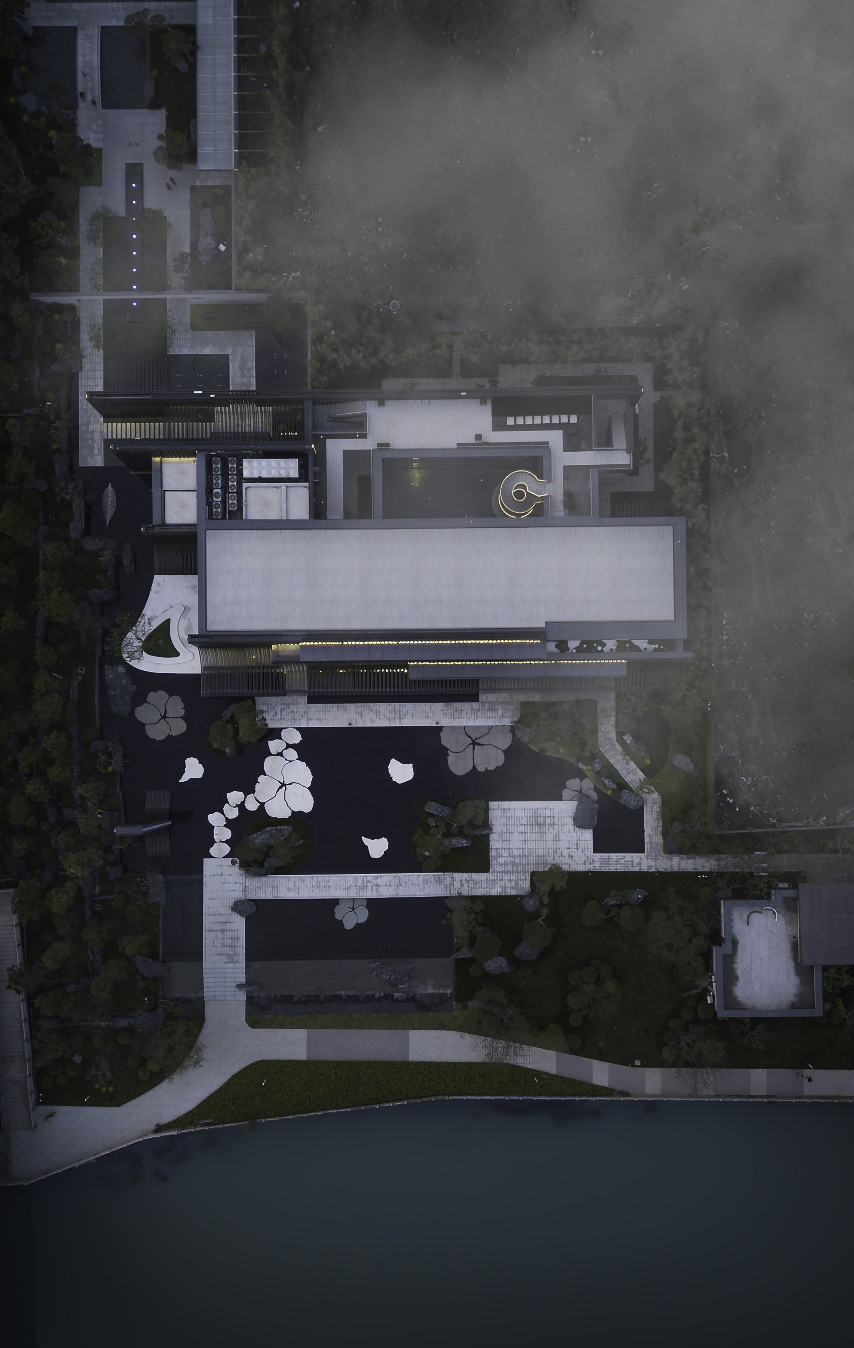 设计最大程度地考虑了建筑的“在地性”。在空间规划上,我们采用扬州特色的园林设计手法,将艺术馆整体动线分成五个部分,打造壹门-贰园-叁堂-肆水-伍运的画意空间。我们希望对每个空间与建筑关系的细致刻画达到步移景异、引人入胜的观感效果。