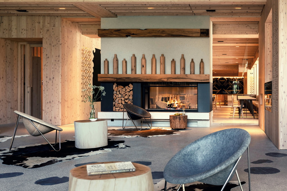 落叶松木材是墙壁、家具和天花板的主要材料,所有的细节都受到当地民间传统的启发。公共区域的地面由平台构成,石材呈浅灰色。通往入口和酒店大堂的黑色石头痕迹,仍然留在传奇的酒店猫马克斯( Max )的记忆中,他在上一家酒店因装修而关闭后,消失于一个未知之地。