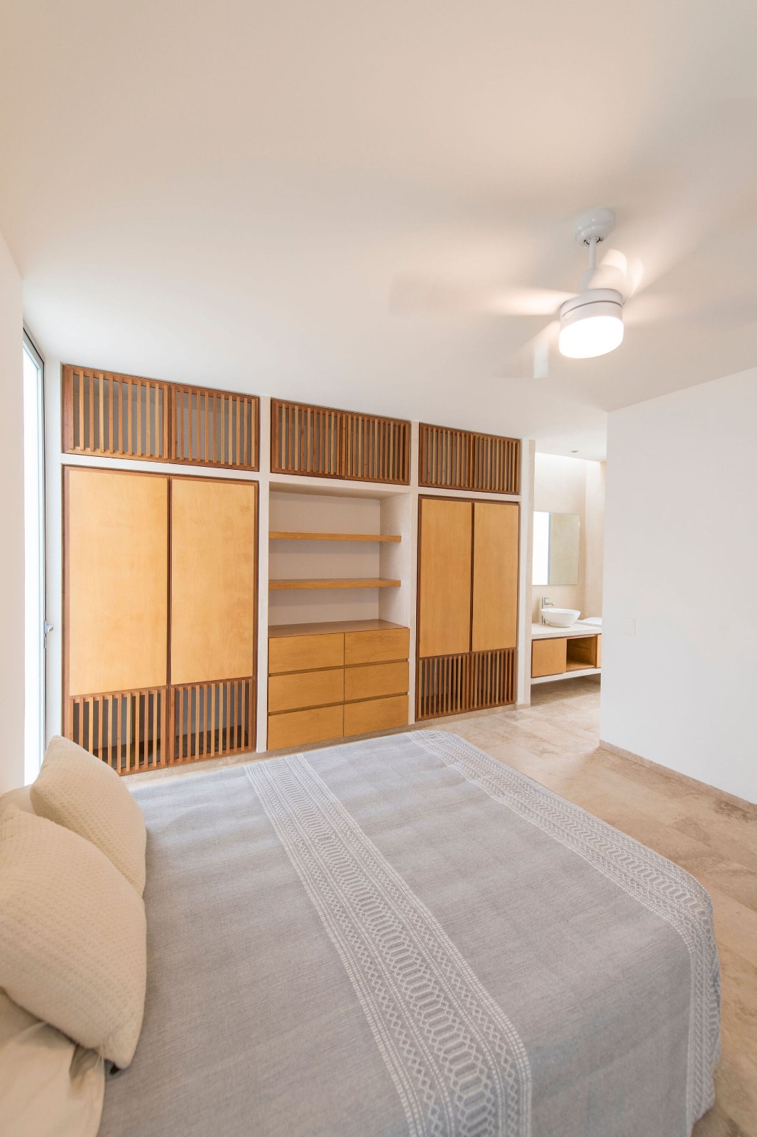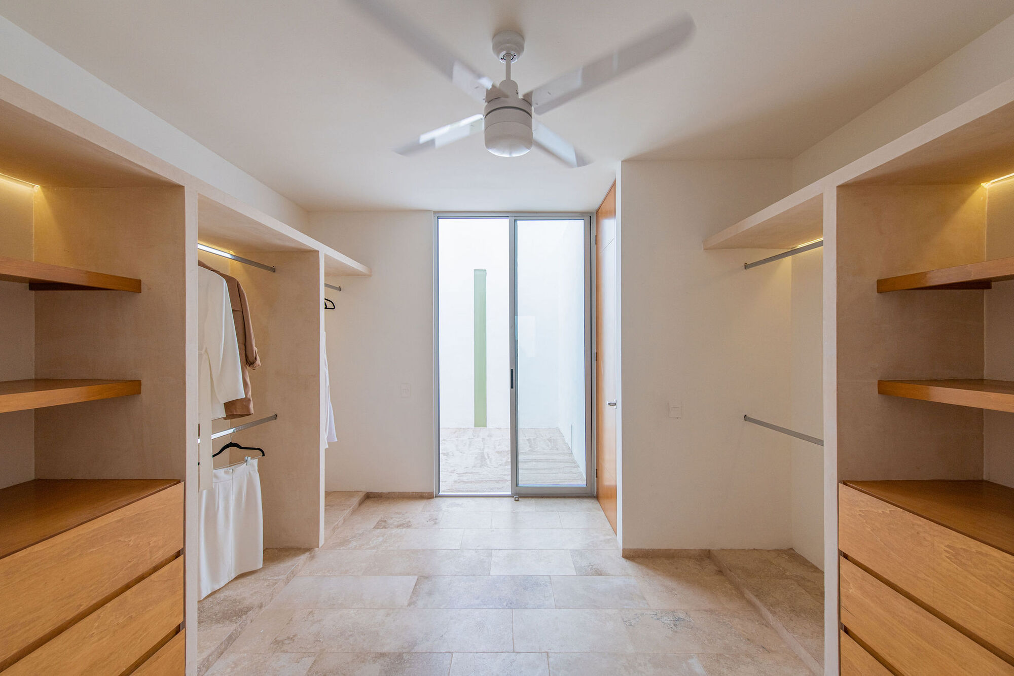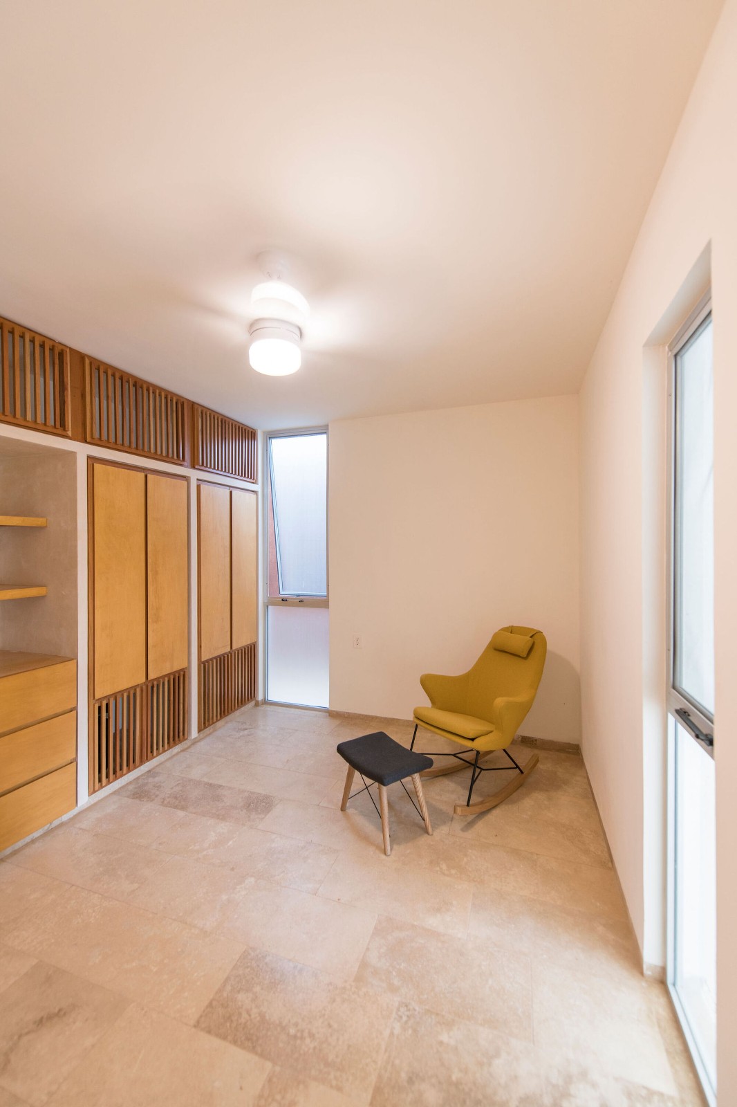 这个区域有一个中央庭院,庭院内种植了卷卷的树(一种玛雅果树),这个庭院让自然光线穿过空间,穿过通风系统进入到建筑内。社交空间(厨房、餐厅和客厅)都位于一个空间内,包含了两个朝北的窗户,这两个窗户增强了建筑与后院的联系,后院内有开放的走廊,池塘,花园和一个保留的区域作为以后扩建区。