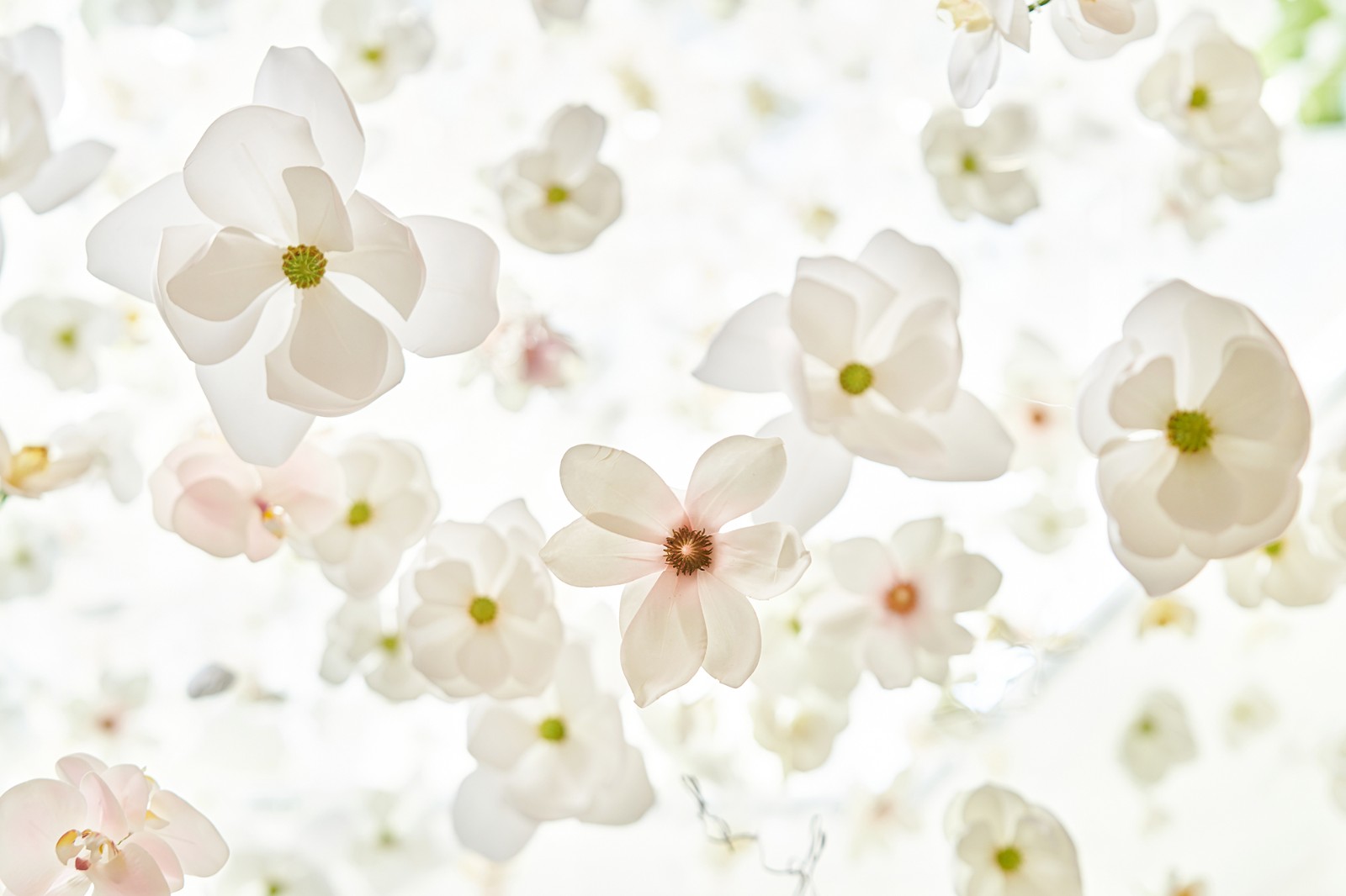 我们选择了形态唯美典雅的上海市花白玉兰作为楼梯空间的花艺载体,像一朵向阳而生的生命之花,这些花瓣热情的围绕在人们周边绽放着她们的美丽和态度。