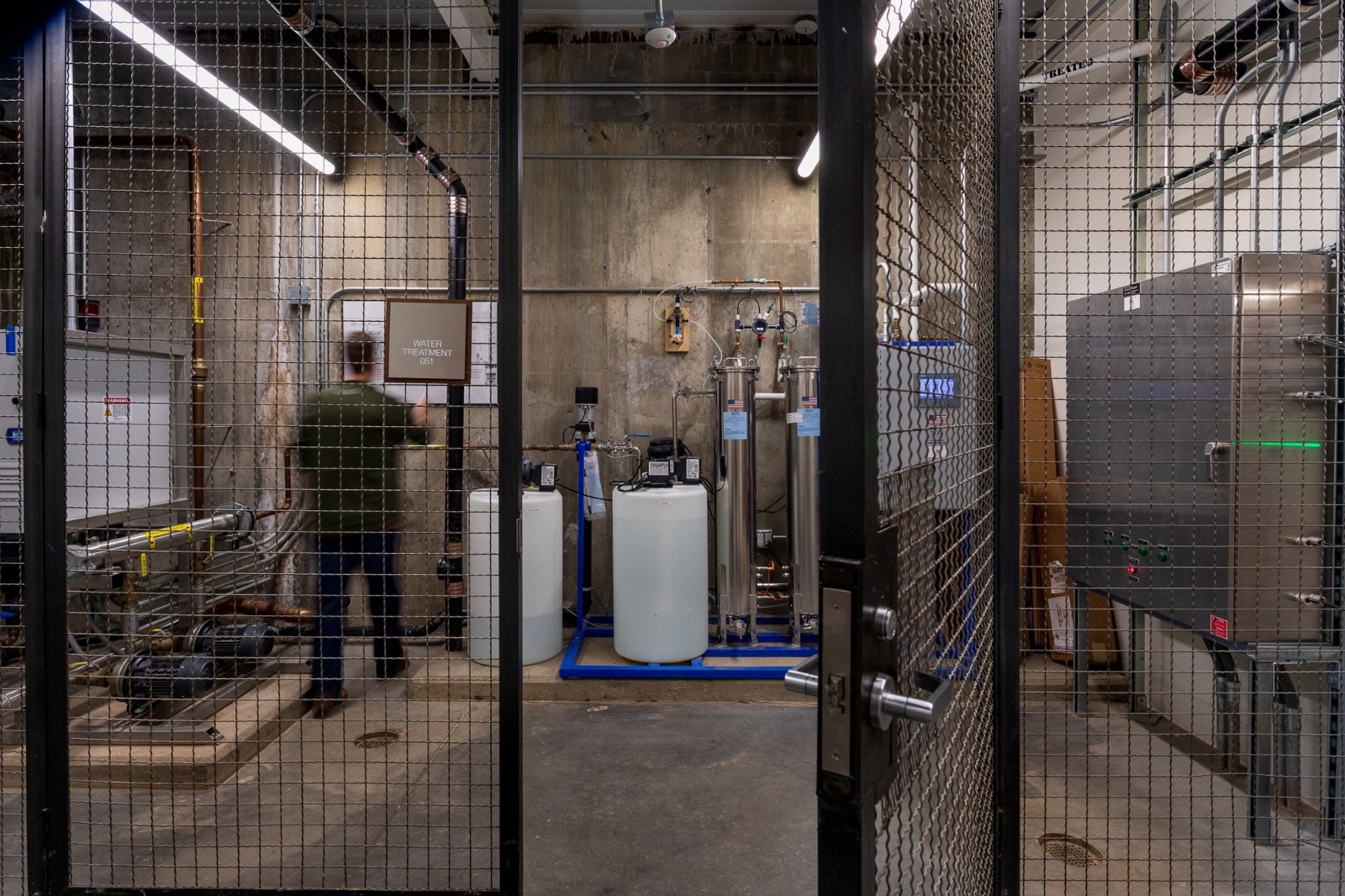 经过处理的雨水用于饮水机、水槽和淋浴,这些装置产生的灰水被送到建筑物主入口的人工湿地。然后,这些水通过重力下渗到雨水花园和外部梯田的滞留结构。该大学目前花费了大量费用将暴雨积水排放到亚特兰大的延伸下水道系统中。Kendeda大楼展示了可以在整个校园部署雨水智能管理的可用策略。