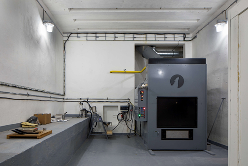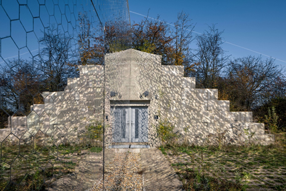 捷克共和国彼得-霍杰克工作室(Petr Hojek Architekti)在布拉格附近一个废弃的混凝土掩体内建造了一个宠物火葬场。 这个火葬场占据了前德尔诺夫防空基地(Drnov Air Defense Site)的一个半地下掩体,这个掩体是冷战时期为保卫布拉格而建的。虽然该场所的主要掩体已经变成了一个军事博物馆,但彼得-霍杰克工作室改造了其中一个较小的服务掩体,并增加了一个镜面表面,作为对其先前伪装性质的肯定。 彼得-霍杰克工作室的创始人彼得-霍杰克对记者说:“伪装掩体只需增加一个巨大的镜面覆盖层,就可以得到一个新的层面。”他说:“原有的外部元素,如绿化和道路,保持在原有状态。乍一看,整个地区似乎没有受到影响。” 尽管地堡大部分在地下,但它有一个开放的混凝土主立面,工作室用小六边形镜子覆盖,形成一个6米高11米长的反射墙。除了使建筑与周围的树木融为一体,工作室还将这一立面描述为反映记忆的象征性“神秘窗户”。 他说:“走近火葬场的游客感受到了世界的千变万化。没有人能长生不老,来访者和他的狗朋友也不能长生不老。”这面镜子墙内的一扇门是用来运送死去的宠物的,而主入口则建在支撑侧墙内。 这个入口通向一个小办公室和接待区,旁边是一个小房间,供最后告别。地堡的其余部分是火葬区和工作人员设施。在掩体内部,彼得-霍杰克工作室的目标是只进行最小的干预,保留大部分现有特征,只增加一些额外的墙来分隔空间。 为了创造简单的内部装饰,墙壁用门和其他胶合板制成的家具进行了粉刷。门厅和等候室里摆放着用木板做成的长凳。 微信公众号:xuebim 关注建筑行业BIM发展、研究建筑新技术,汇集建筑前沿信息! ← 微信扫一扫,关注我们+