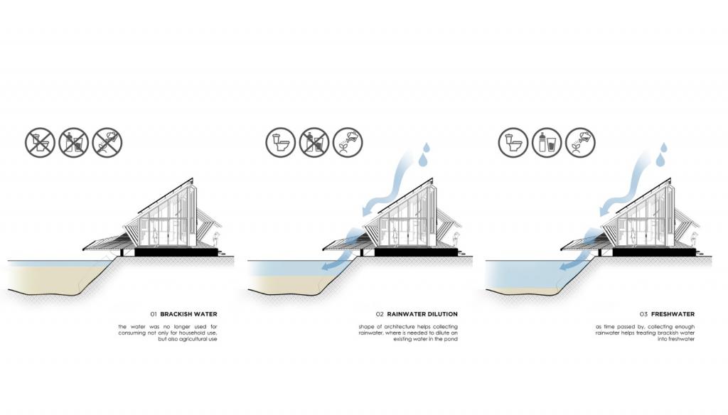 人工池塘最初的修建是为了供水,同时给人以视觉上的氛围感和舒适感。但随着盐渍土的累积,池塘中的水质逐渐呈现微咸化,使得其无法再被日常使用,也无法用于农田浇灌。所以为了将这片低生物多样性的水塘变为可用的淡水资源,雨水对其所产生的稀释作用就显得尤为重要。
