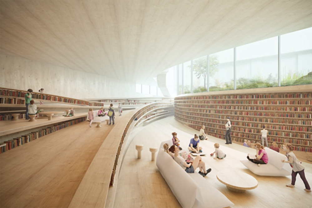 隈研吾工作室(Kengo Kuma and Associates)与马德工作室(Mad Arkitekter)合作设计了一个图书馆,该图书馆将围绕挪威希恩市一个小型城市公园内的现有树木弯曲。 这座建筑名为易卜生图书馆(Ibsen Library),将成为展示19世纪出生于这个挪威城市的剧作家亨里克-易卜生(Henrik Ibsen)著作的文化中心。这个项目由隈研吾工作室和马德工作室的设计,是与伯罗-哈波德工程公司(Buro Happold)合作开发的,它们是最近一次竞赛的获胜者。 易卜生图书馆将建在希恩市中心易卜生中心(Ibsenhuset)旁边的一个小公园里。易卜生中心是该市的文化中心和音乐厅,也以这位剧作家的名字命名。这个图书馆的设计旨在保护和改进其公园环境,同时最大限度地发挥其作为公共空间的潜力。建筑的曲线形状将围绕现有的树木形成,而一个新的室外圆形剧场和多个入口将有助于连接建筑与公园。隈研吾工作室负责人池口由纪(Yuki Ikeguchi)解释说:“易卜生图书馆文化区的选定地点提供了在希恩市创建新的文化核心的巨大潜力。”他说:“目前,公园相当安静和隐蔽,但与图书馆的新空间相结合,它将被完全激活,有自发的人流和溢出的室内活动。”为了最大限度地将这种连接引到周围的树木和公园土地上,设计采用了一种有触觉的、温暖的森林主导的自然材料色调。 池口由纪说,大面积的玻璃也将沿着建筑的一个边缘引入,以创造“无缝的室外和室内空间”的感觉。从外观上看,易卜生图书馆最显著的特点之一将是其柔和弯曲的交错屋顶,朝着公园方向降低。 它还将有深的屋檐,将遮蔽图书馆入口,并有覆盖室外空间和座位区域的双重作用。隈研吾工作室说,这个屋顶将被木瓦覆盖,旨在呼应周围树木上树叶的形状和比例。 这些多孔型的木瓦将被放置在天窗上,在里面创造斑驳的光线效果,让人想起在树冠下行走,同时在夜晚和黑暗季节发出柔和的向外辉光。易卜生图书馆将建在一个斜坡上,地面上有两层,山坡上嵌有两层。大部分的空间都是开放式的,没有固定的隔断,书柜被用作隔断物。 池口由纪解释说:“这个项目与传统的图书馆理念不同,图书馆的空间专注于研究、阅读和学习,但我们对这个新图书馆的设计是将特殊活动和日常活动充分结合起来。”。在它的一楼空间将是一个咖啡馆和儿童区,有木材和泥土色调,以最大限度地连接到公园。 地下层将主要为成人设计,池口由纪描述为“淹没、保护和嵌套在地下”的舒适氛围。地下室的一个显著特点是倾斜的地板,排列着一系列带书架的宽台阶,可作为游客的座位。 微信公众号:xuebim 关注建筑行业BIM发展、研究建筑新技术,汇集建筑前沿信息! ← 微信扫一扫,关注我们+