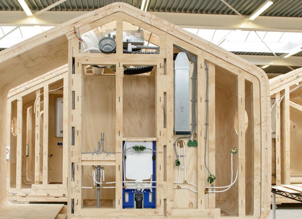 Fiction Factory设计开发了一种可持续的模版化住宅Wikkelhouse,利用了纸板做为主要建筑材料,可以被订制成不同的大小和功能。建筑材料减少了对环境的影响,其环保和可持续性是普通住宅的三倍,并且做到了100%可回收,每个部分都可以无限地被拆解和回收。