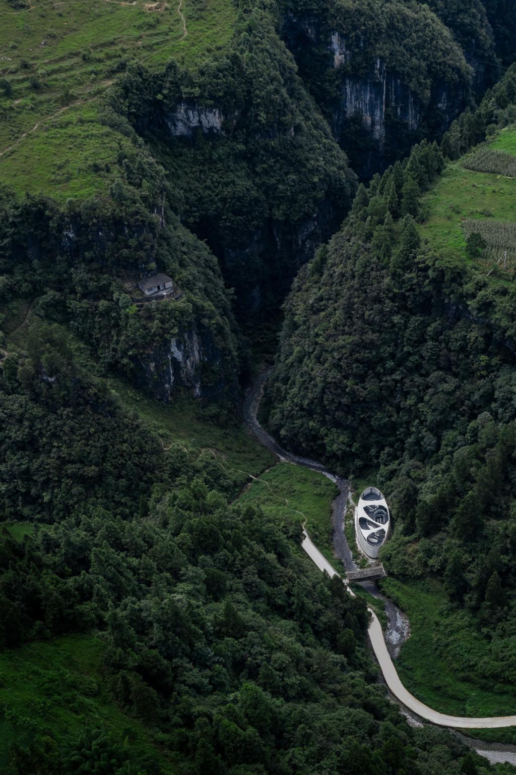 Wutopia Lab接到贵州十二背后旅游开发有限公司的委托,在贵州遵义的小十二背后景区,创造一座秘境方舟。从清溪湖景区码头出发,乘快艇走水路18公里,在一颗水中的指路石引导下,可以到达时空裂隙一般的小十二背后的入口,入口狭窄,前后都是积水,在雨季水能没过肩膀。秘境的入口,无法从陆地到达,而小十二背后,又是别样的一片天地,等待我的是整段徒步溯溪的2.8公里。
