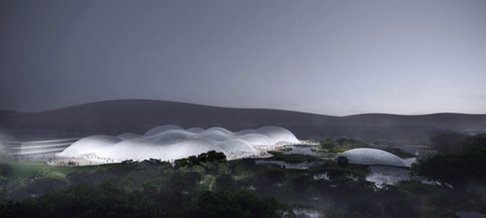 日本SANAA建筑工作室透露了它在深圳的一个博物馆的设计,这个博物馆将被一个网状百叶窗屋顶覆盖的半球形的建筑所包围。