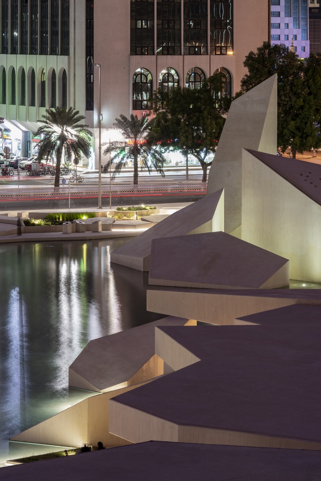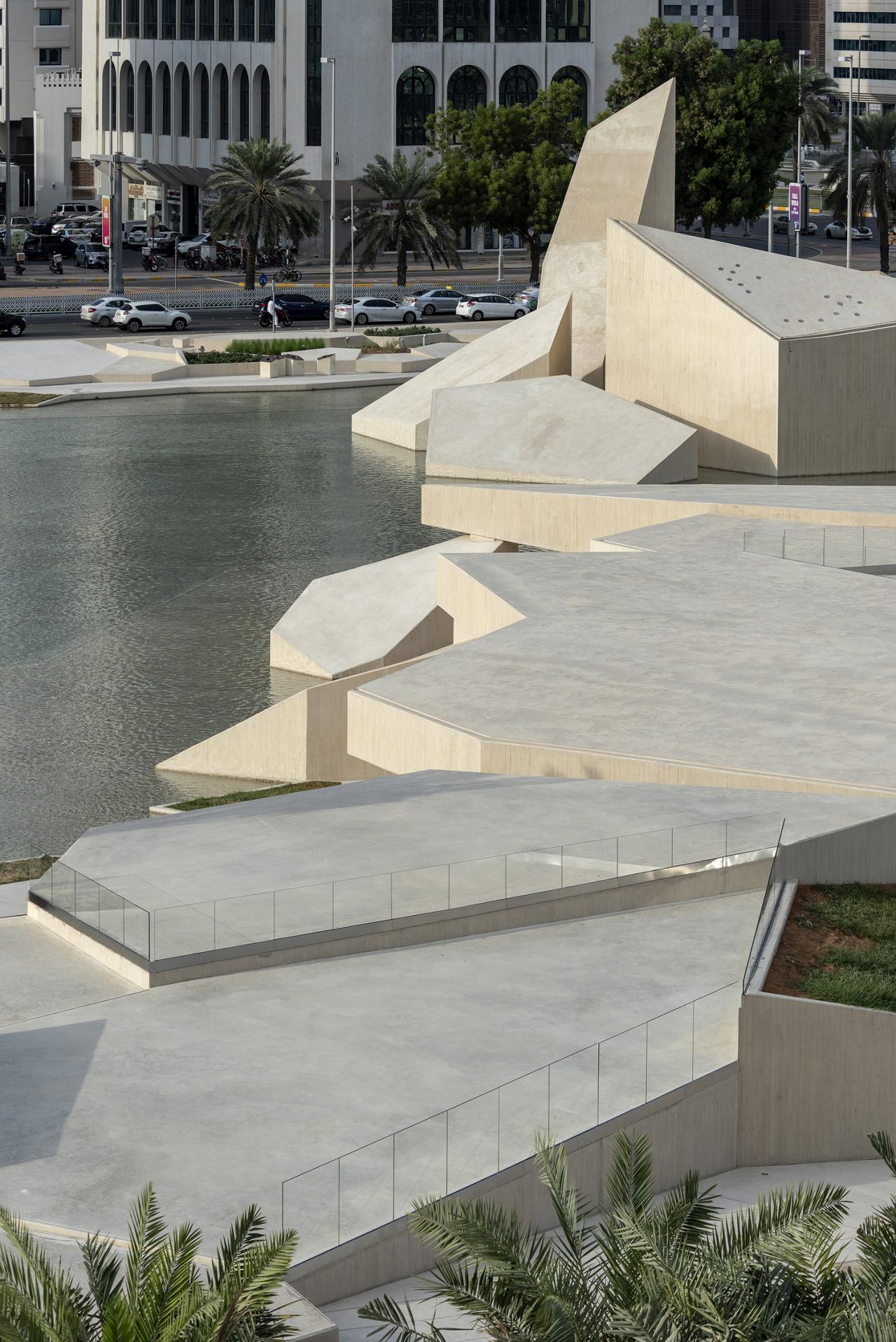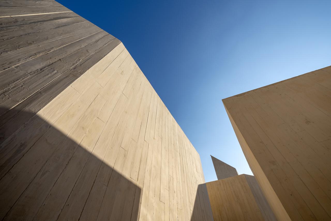 几何形状似乎有意地介入建筑和景观之间。沿着过渡区,景观由水平面变为倾斜面,并逐渐发展成实际建筑,最终形成Al Musallah礼拜堂。从坐柱到建筑体量,所有组成部分都与公园融为一体,成为自然景观元素,将堡垒和文化基金会作为两个主要的视觉支柱。