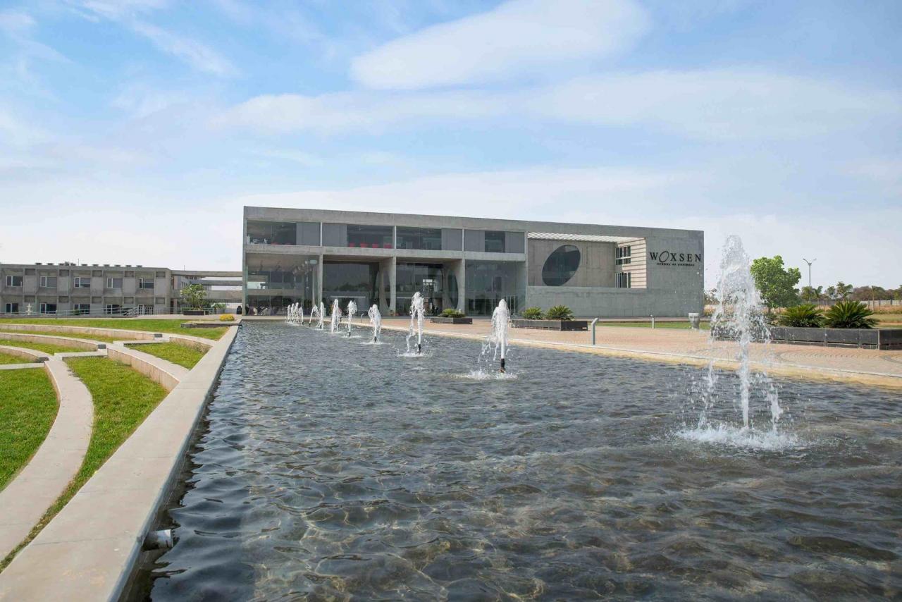 坐落在安详宁静的印度海得拉巴(Hyderabad)至孟买(Mumbai)国道路段上的 WOXSEN 商学院是一个占地近 200 英尺(约 80 万平方米)的野心勃勃的项目。怀抱着在 2020 年之前,跻身国际卓越的商学院联盟的目标,WOXSEN 尝试着超越一系列传统的教学标准并且活化了企业家能力和其教育方法及可持续性的概念。与热衷于为这所机构创造一个鲜明的身份标签相同,决策者们认为这座建筑应该反映出他们对课程的独特见解与开创性的教学风格。