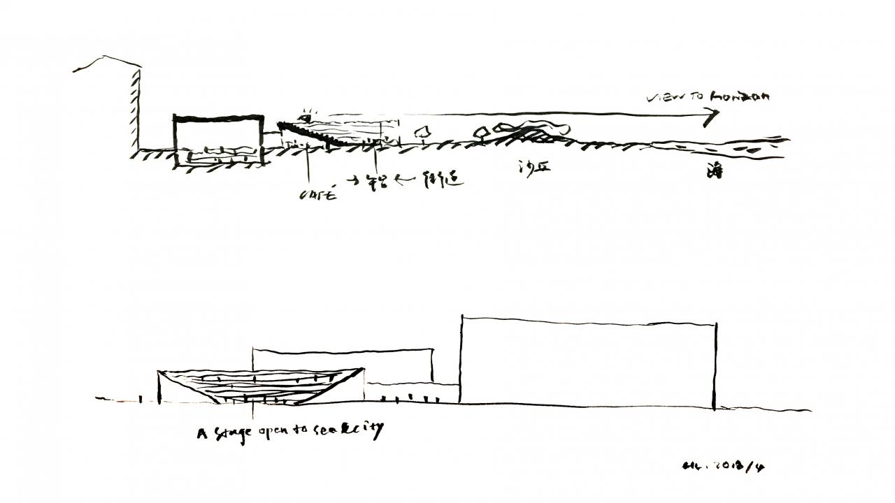 一个姿态开放的建筑群,一座属于城市的剧场。我们期待这里不仅仅是一个演出艺术的中心,适合不同形式演出的多功能场所;同时更是阿那亚社区文化生活的中心,承载更多丰富多彩的文化艺术活动和社区公共生活。