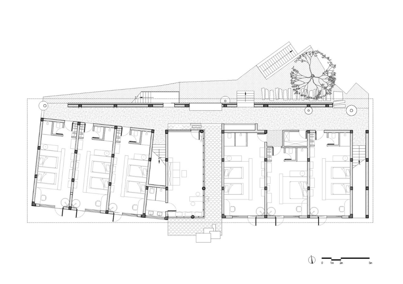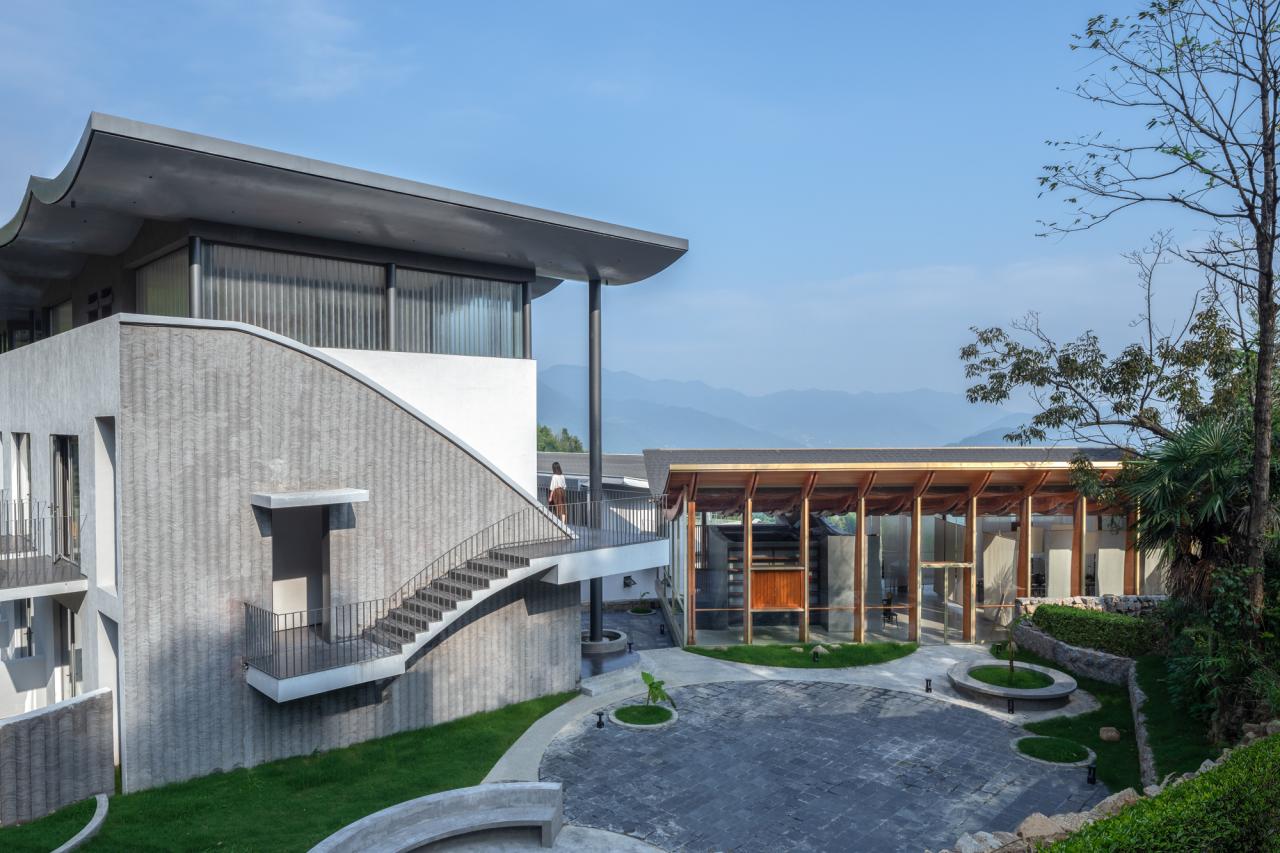 屋顶是建筑与天空的连接,是空间重要的庇护,也是建筑的核心要素。屋顶的形式逻辑被两个自然要素所左右,重力和雨水。重力作为恒久存在的万物法则,雨水作为时刻变化的自然之物。与重力的抵抗、与雨水的疏导,决定了屋顶的形式演变。随着现代材料和力学的发展,自然要素不再是屋顶形式的主导,建筑显现出一种强大无比的人力结果,变得越来越像机器,形体的几何纯粹性和形式的手工操作感(切割、扭转……)展现着现代人的野心。我们对于建筑的哲思并非如此,建筑不是对自然驱赶,而是天人合一的互相接纳:对自然的狂野进行顺导,对自然的生机尽心呵护。