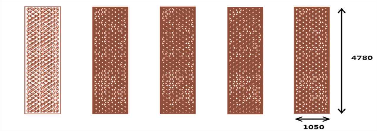 自然的光线常常被建筑师认为是建筑空间的灵魂,通过“竹林光影”的技术实现的难度也恰恰成为了装配式建筑诗意表达的亮点。先用一张自然界中的竹林照片,在计算机中进行像素化处理形成矢量化的数据,然后通过参数化的方式把竹林肌理转化到建筑的表皮上,通过建造机器人来控制铝板穿孔的不同翻起角度,从而控制室外光线进入效果,达到光影斑驳的竹林空间意向,最终呈现“万竿绿竹影参天”的景象,随着时光变化,又能“竹中窥落日”空间意境丰富而静谧。