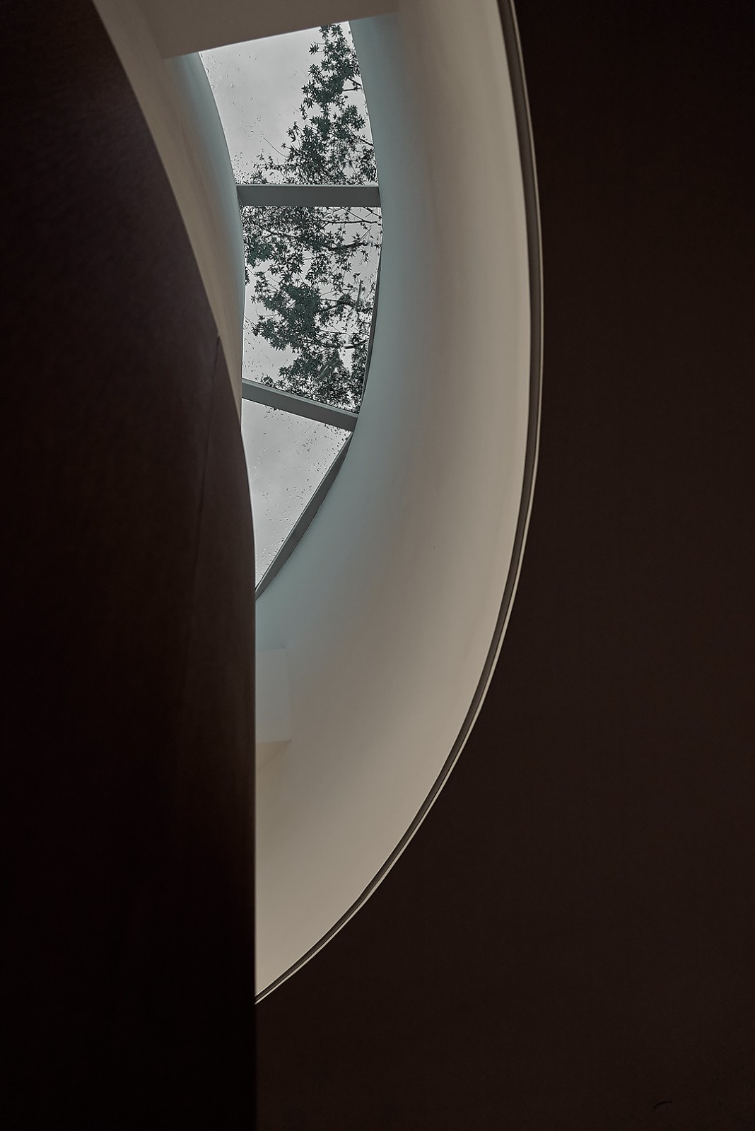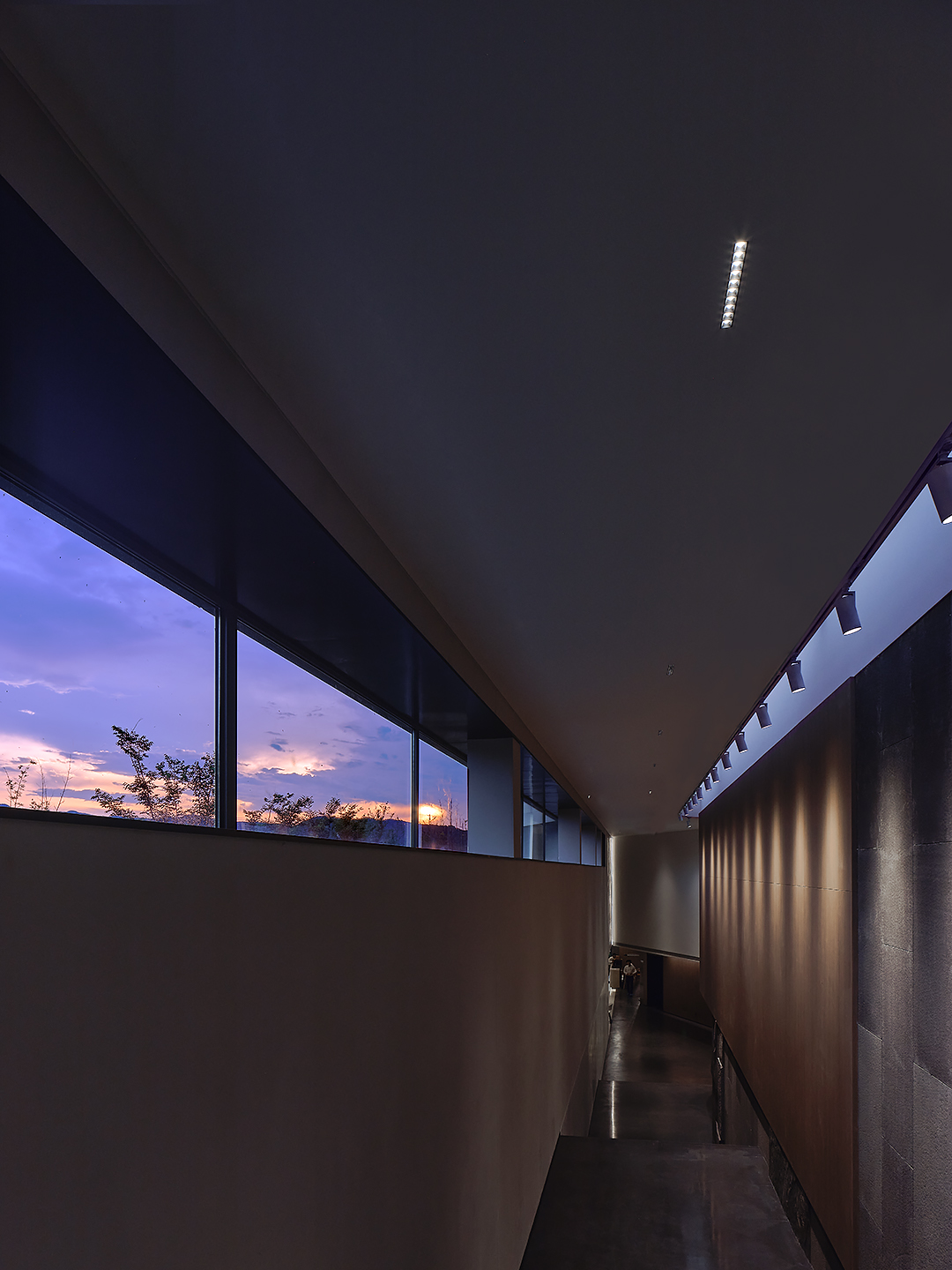 继续拾级而上,直至顶层主通道,无论是右上方留出“一线天”的做法,或是左边开设的观景长卷,都让人可以时刻体认到环境的变化。