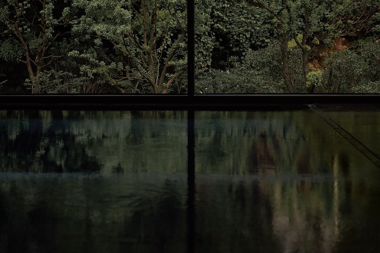 水面也成为了空间序列的一部分,镜像并延伸着绿意,倒影着山水之趣层层荡漾开来,一场全幅的视觉盛宴就此开启。