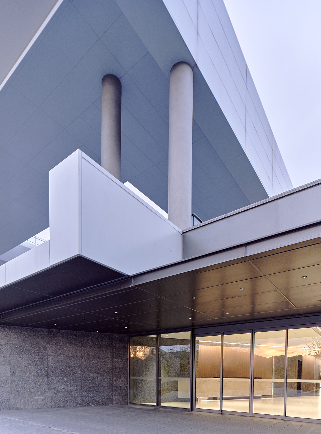 在入口处,现代设计理念中的延伸感柔化了建筑内外生硬的界限。