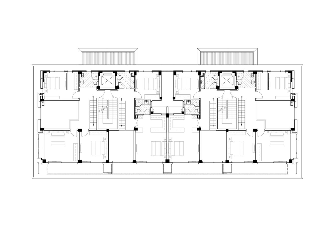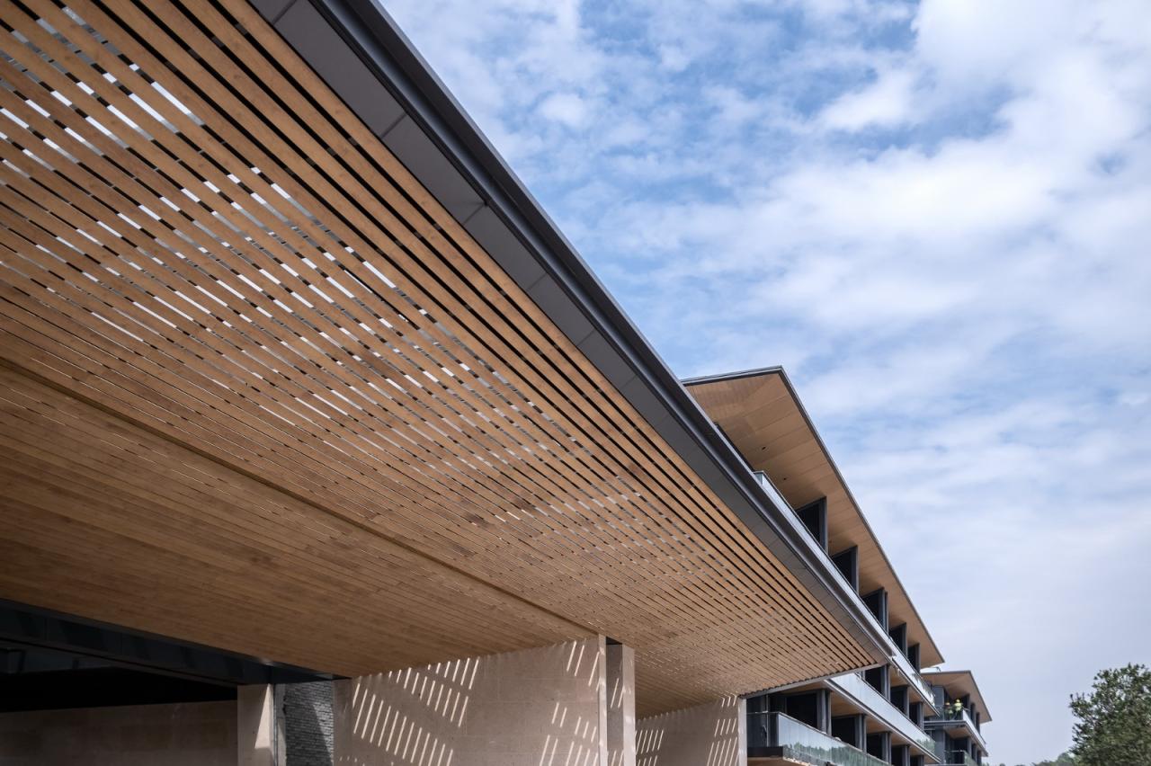 在处理建筑构件搭接细部时,没有简单采用现代建筑中常见的标准化做法,而是刻意以分离构件的方式展现更多的地域和人文气质。景观细部设计方面亦有创新处理,泳池区域没有完全采用硬性的、直线相交的方式,而是融入更为有机、活泼的圆角多边形形式。