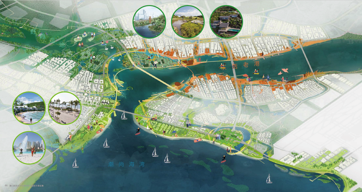 片区总用地面积约62平方公里,北至翔安南路,南至机场边界,东至翔安区行政边界,西至港汊水域,包括莲河、蔡厝、大嶝、机场造地区及小嶝岛,海湾、滩涂、岛屿、湿地兼备,生态景色宜人。设计在总体规划之外,自行划定重点片区,进行城市设计。