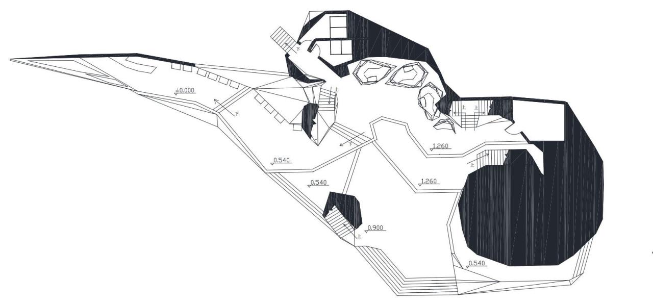 设计表现主义是将设计重心从客观硬形式(场地、结构、功能)转移到设计师自身上,设计内容追随设计师个人的无意识探寻,讲求个性与象征的倾向要求建筑与场所都要具有不同于他人的个性和特征,关于个人的精神内容被客观显现,流畅的塑形让建筑体与个人精神内容胶乳相融。建筑体似乎成为了一个设计师的外显精神流体,精神的笔法流入设计当中,它使得建筑的形式内容非同于仅仅只是生硬无感情的形式尝试、形式游戏或形式创新,因为关于设计师个人的经验内容流入设计,最终它赋予建筑体以精神的呼吸。