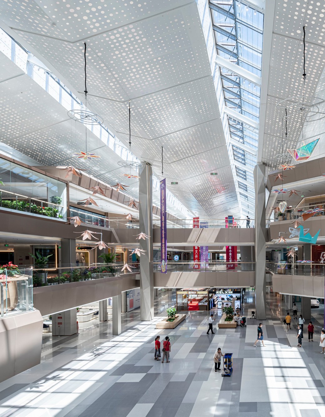 集中式商业吸取了航站楼的商业布置方法,以一片完整的大屋顶覆盖下部高低错落的商业盒子,现代商业氛围与工业建筑的空间特色得以交融。