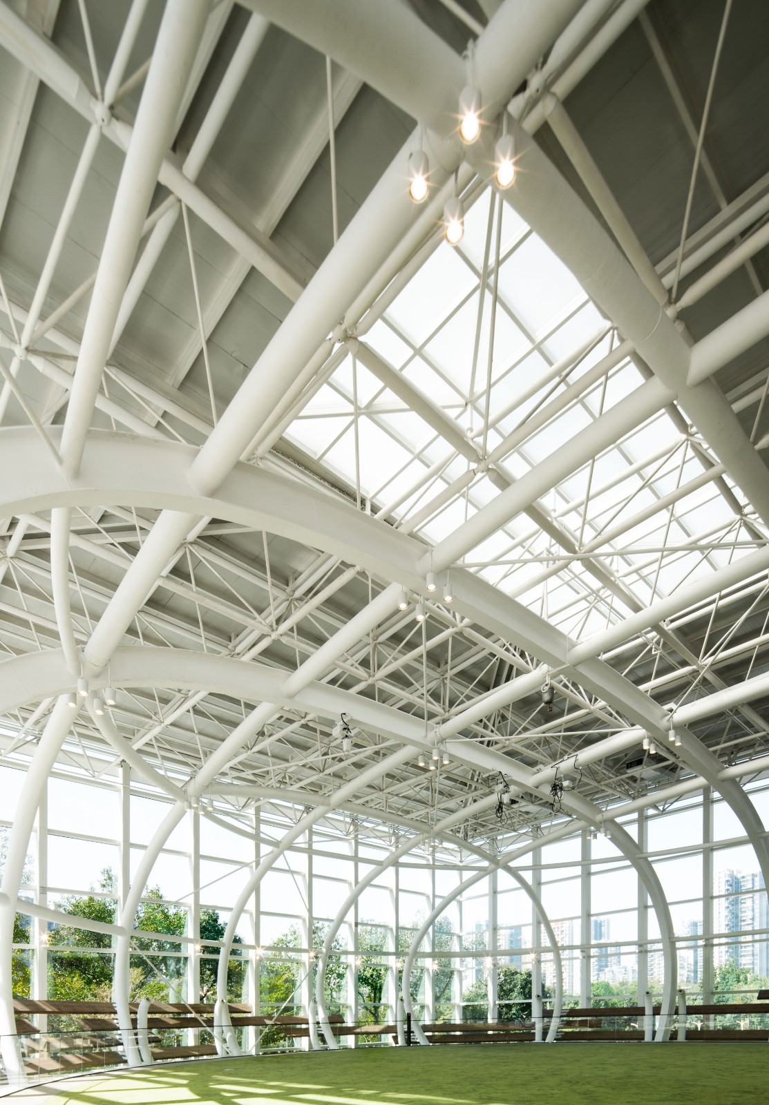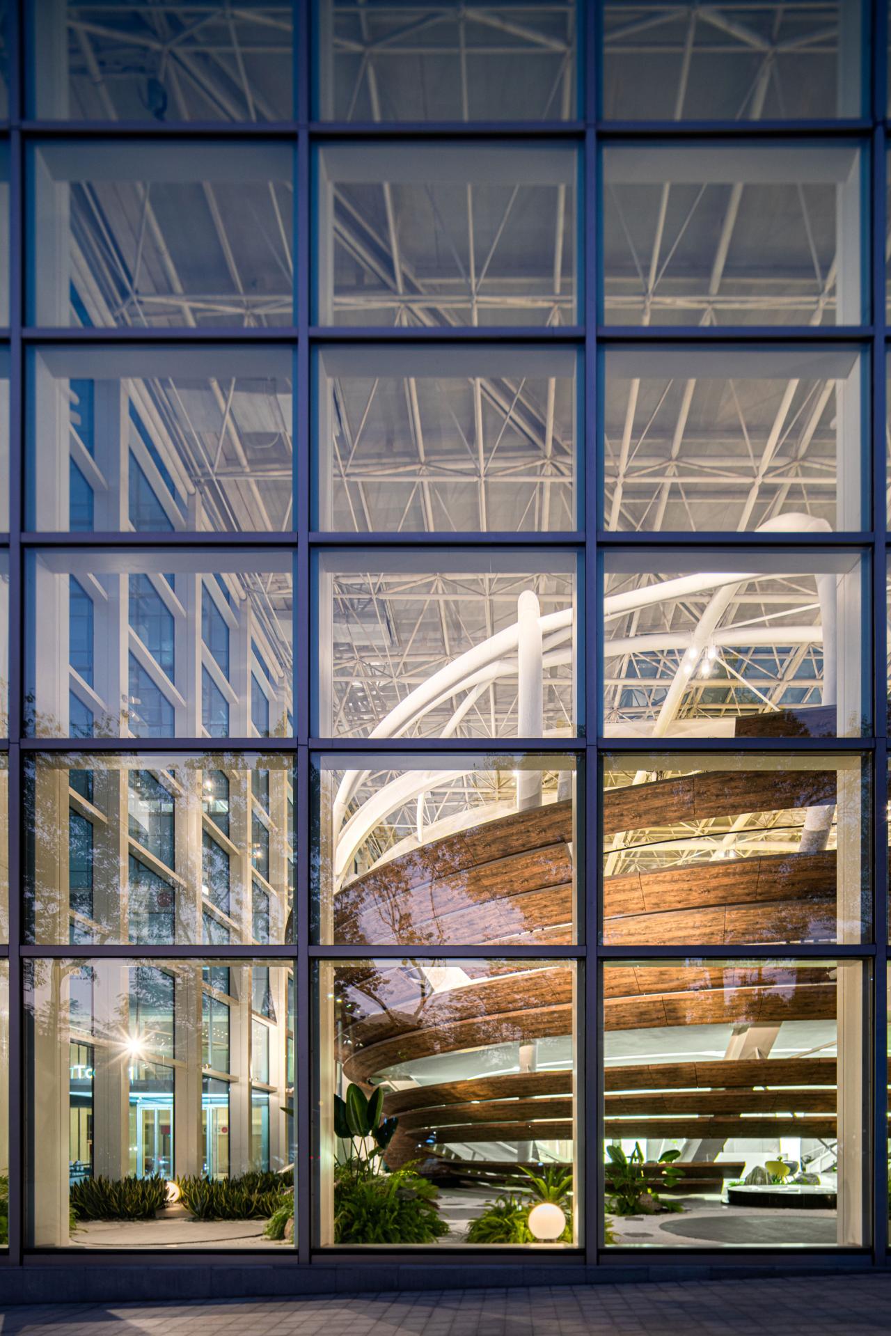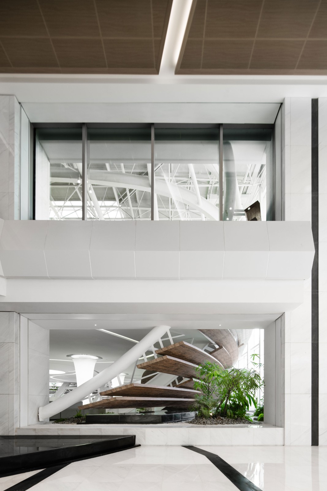 此外,建筑内部白色网格状结构层层相接,不断延伸、扩张之下,形成极具秩序感与仪式感的存在,带来的不仅是视觉上的震撼,更是文化语言的表达,是理性且科学的精神展现。