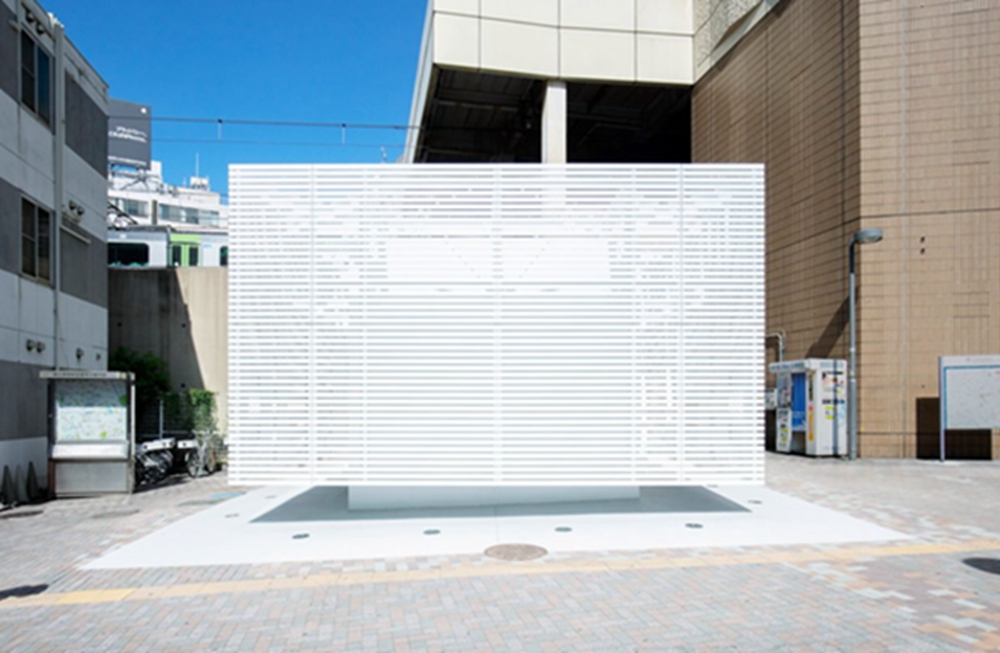 平面设计师佐藤可士和(Kashiwa Sato) 在日本东京市中心的惠比寿(Ebisu)车站旁建造了一个用白色铝百叶窗包裹的公共厕所。