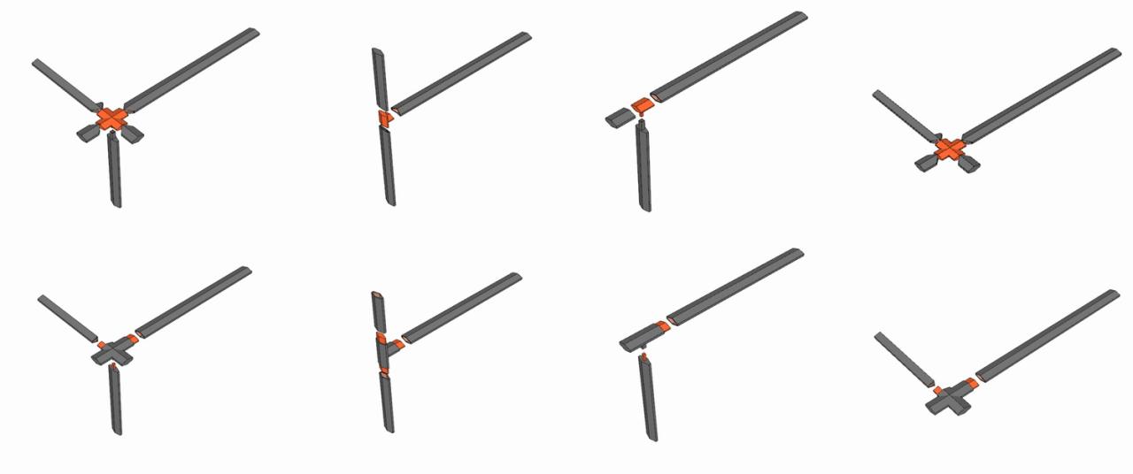 △ 设计研究:水平十字交叉、三向立体交叉装配节点