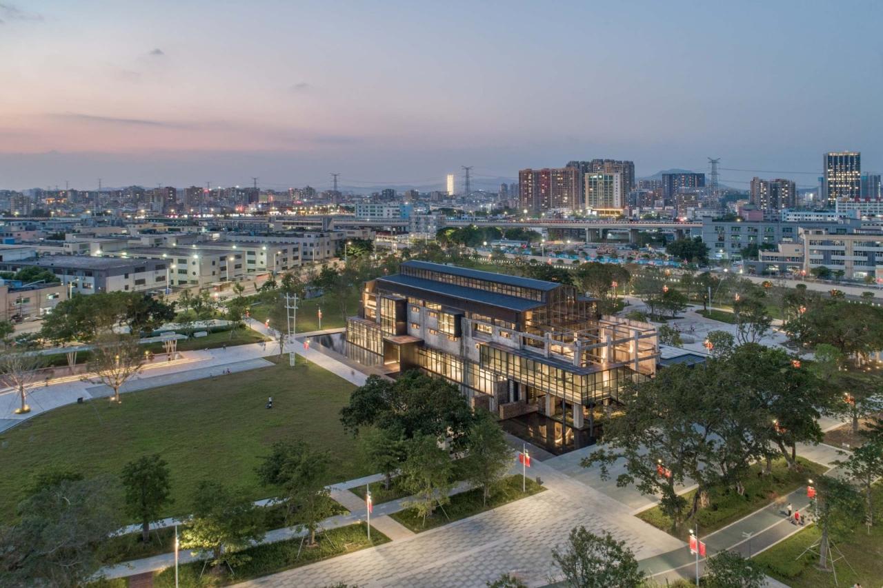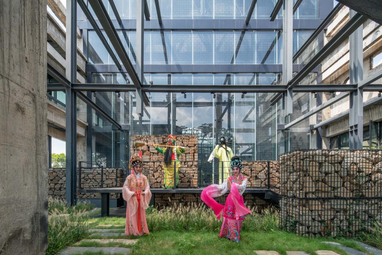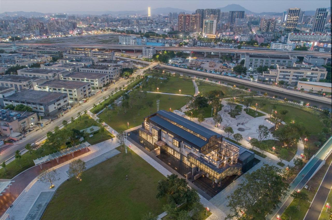 废墟的精神性再生——从废墟上重生的沙井村民大厅(又名蚝乡湖文创馆),作为向沙井村民和深圳市民开放的公共空间,提供创意、休闲、服务等功能;另一方面,沙井村的各种具有地方特色的传统文化活动可以在此汇聚,包括:村史展览、民俗仪式、祖先追忆、家族议事、文化交流等。某种意义上,被茅洲河紧紧环绕的沙井村民大厅,犹如一个具有象征意义的精神性空间。