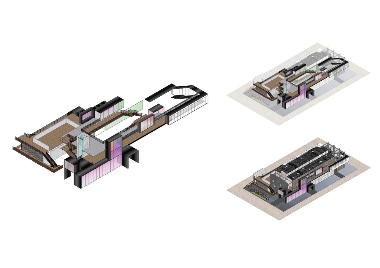 加加减减的局部修补术作为深圳经济特区的早期工业遗存,岗头柴油发电厂实际上是一个典型的非正规建筑,没有图纸档案,也没有精确的测绘资料。建筑师需要在不到六个月的设计、施工周期中,结合施工状况实时修改设计。这种面向解决问题的应变策略,我们称之为加加减减的局部修补术。加加减减的局部修补术——在整体上,我们把新增建筑理解为废墟的逆向结果。废墟本质上是一个随时间演化的局部衰减过程,因此,基于废墟之上的新设计也应当包容局部的加加减减生长,它是模糊的、意外的、多可能的、不精细的。比如,建筑的外立面和空间体量充满了凸凸凹凹,这种碎片化形态也许从一开始就能兼容后期的局部增减。