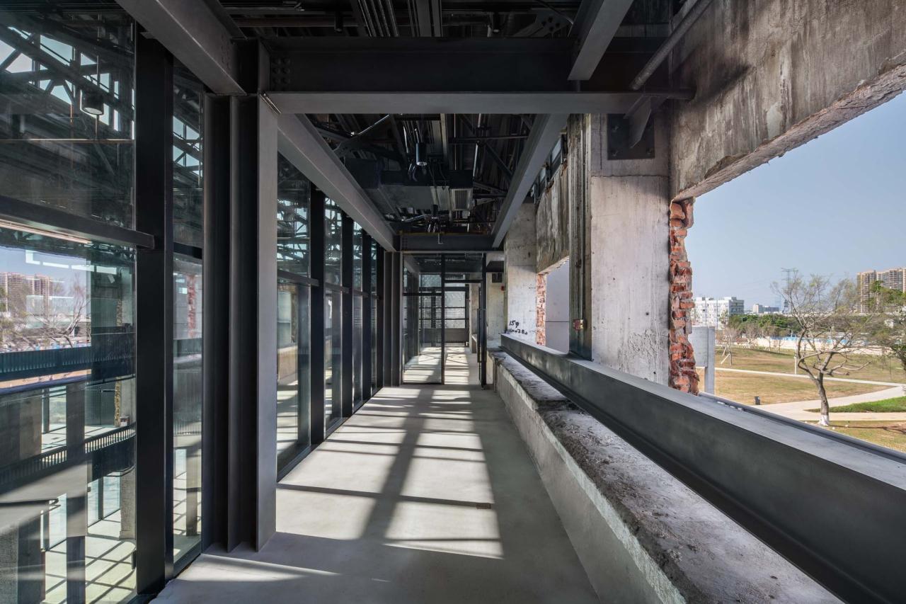 加加减减的局部修补术——在细节上,意味着建筑兼容局部的破损状态,因为废墟本身就是残破的;意味着建筑兼容局部的附加状态,比如管线、设备等的外挂并不一定影响整体美学;意味着建筑兼容局部的切割状态,只有通过切割才能让材料的内在力量显现出来;意味着建筑兼容局部的拼接状态,不同构造的直接冲撞也许更加具有戏剧性;意味着建筑兼容局部的修补状态,修修补补打破了不必要的精确性,反而突显了真实建造感。
