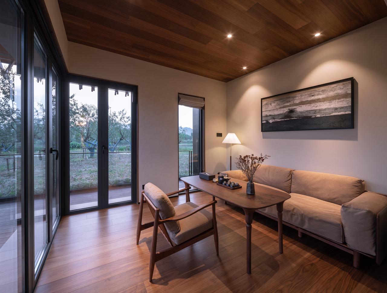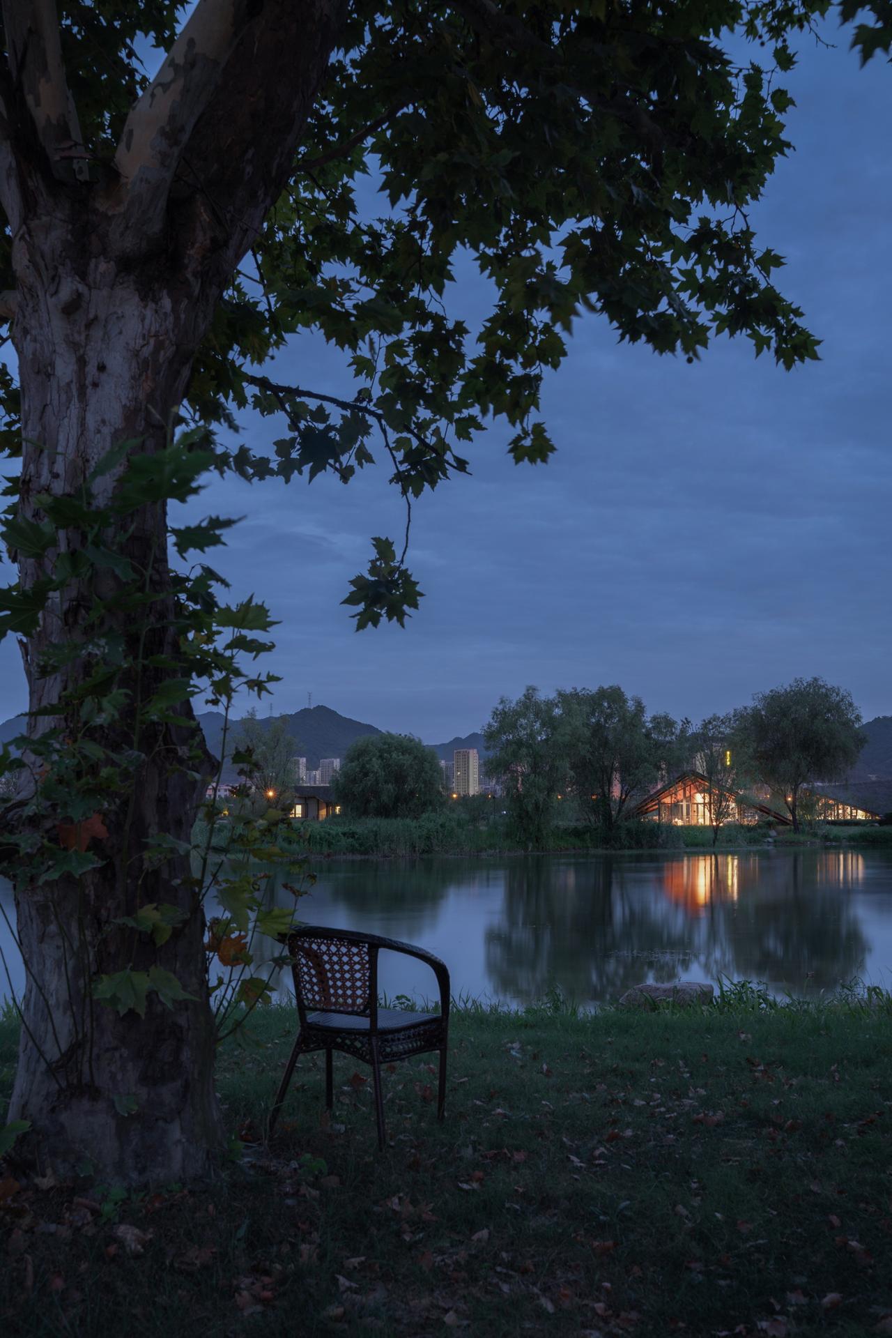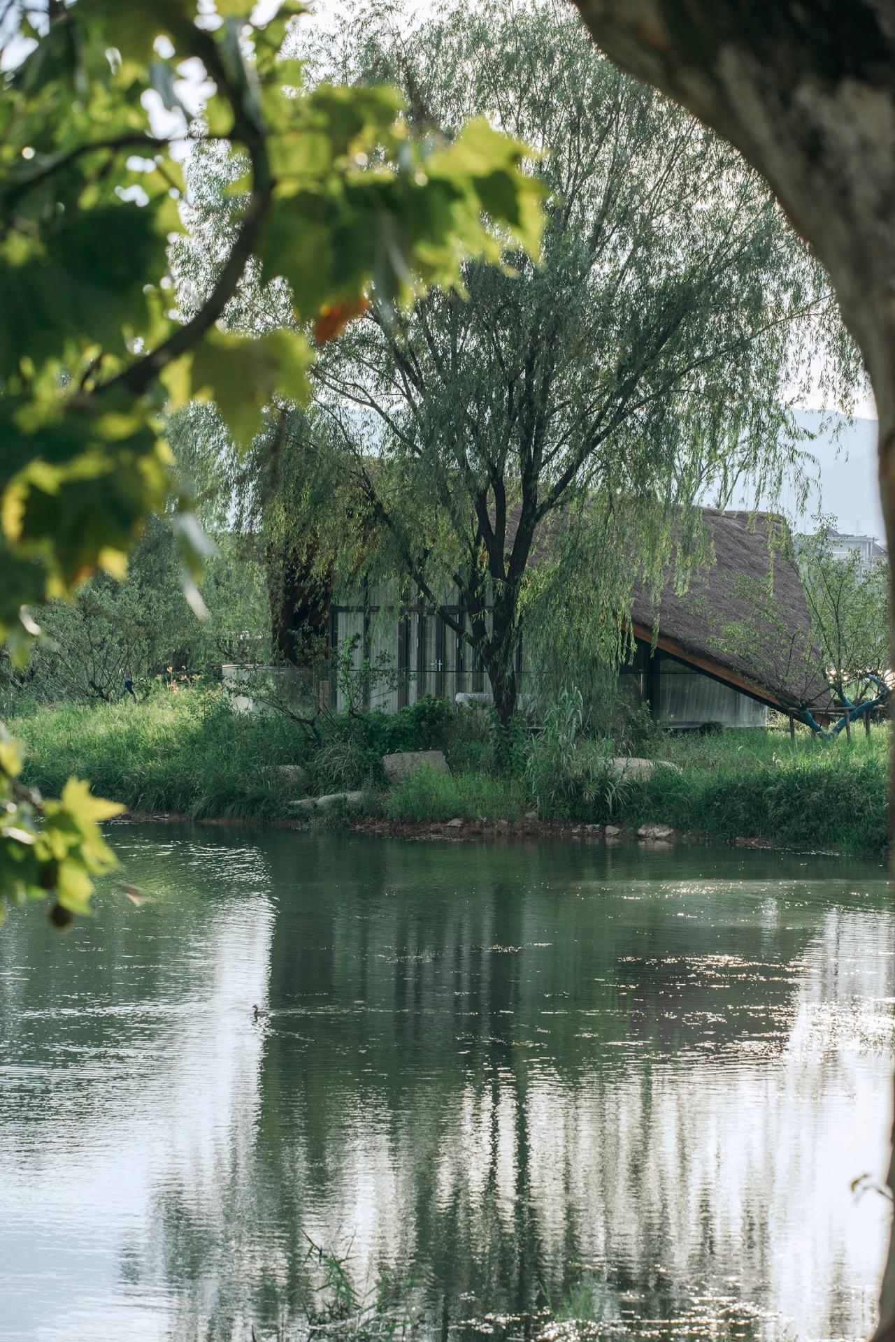湿地生态酒店由两个客房类型有机打散分布组成,都是运用了在大屋顶下生活的概念,大屋顶也像是翅膀,如小鸟般栖居于此,在岛上停留片刻,轻轻落在水面上。古人造物很喜欢因地制宜,轻巧的介入自然,用木头把房子架在水上,房子被自然融入与包裹,这种生态观念在中国人的骨子里就一直存在。很多人会说这两个房子很有江南的味道,我认为这种江南性一方面在于对房子虚体空间属性的理解,放大檐下空间的比例,连接人居空间与自然天地,同时通过对尺度的把握创造怡人的居住空间,皆是营造一种人、空间、自然三者之间的关系。