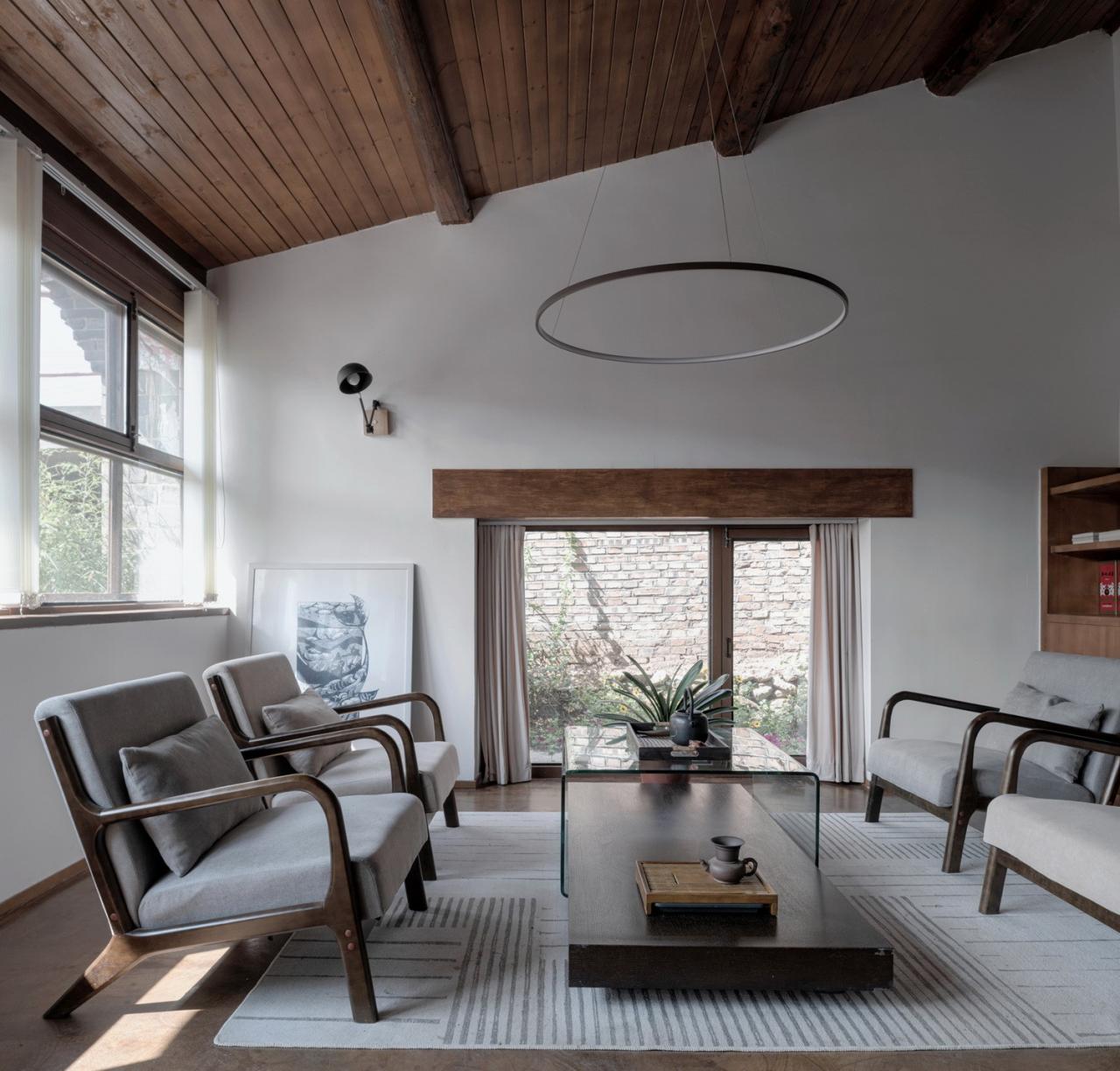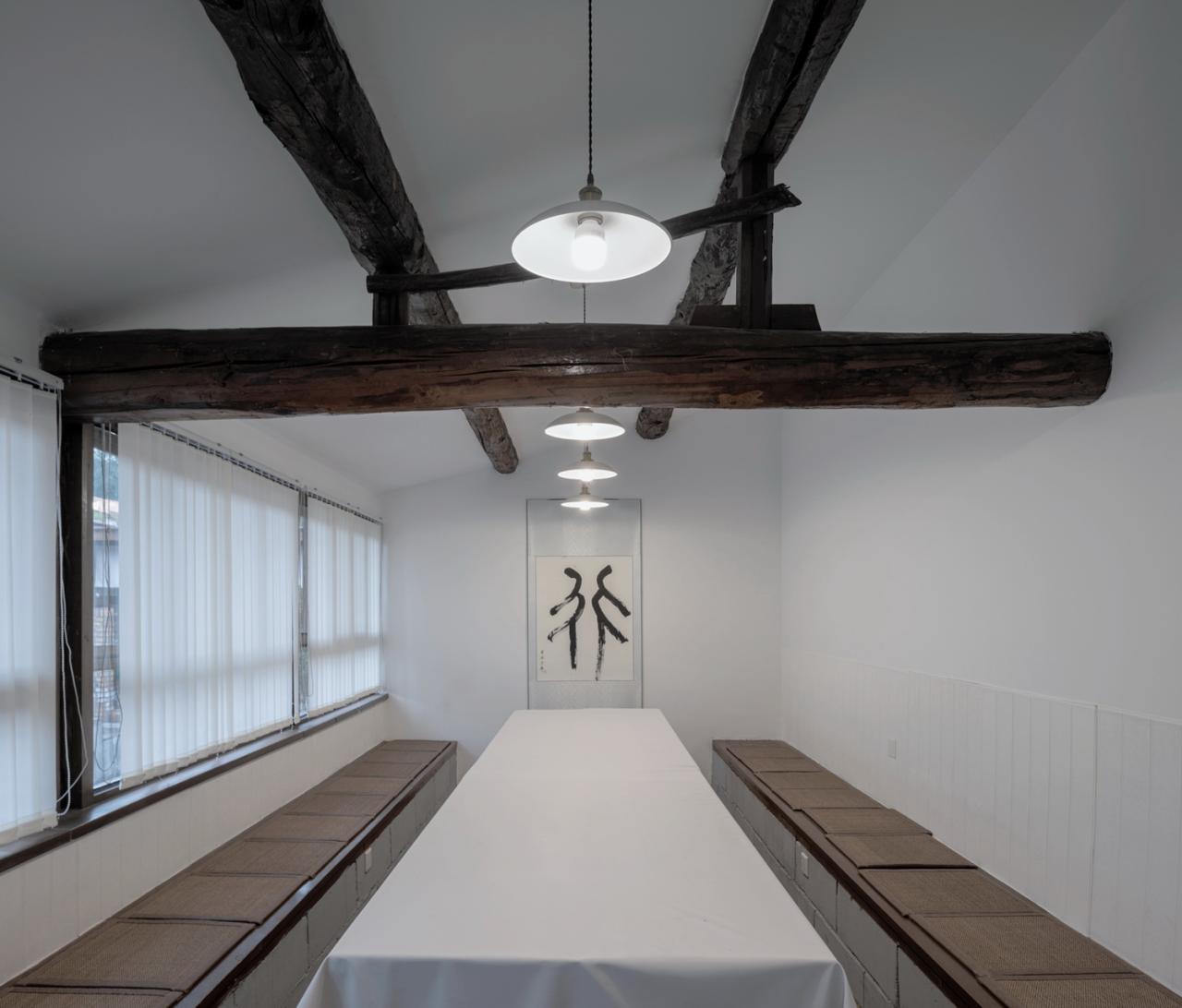 室内的一些处理都遵循维持原有结构的本意,保留、裸露原有结构的梁、檩,外墙做内保温,原有木窗框也做了保留,并在内侧加设新窗框和中空玻璃,而外侧原有窗框进行可拆卸处理,方便清洗玻璃。