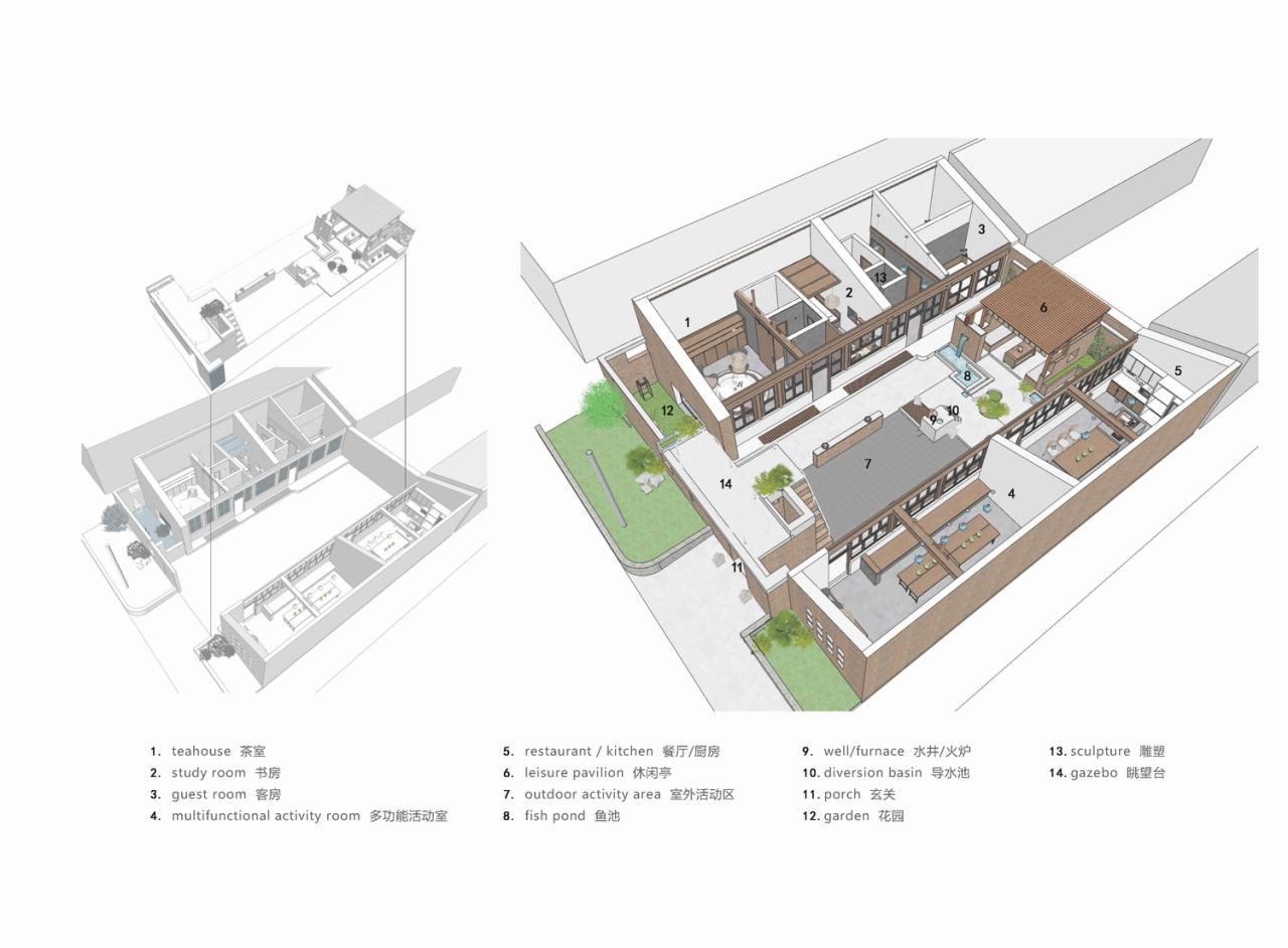 对民房的处理则注重保留原有建筑的历史遗留特色,整体控制在微介入、微建设的适度范围,但在功能上和生活环境的提升上力求满足当下的使用要求。