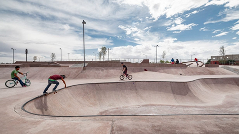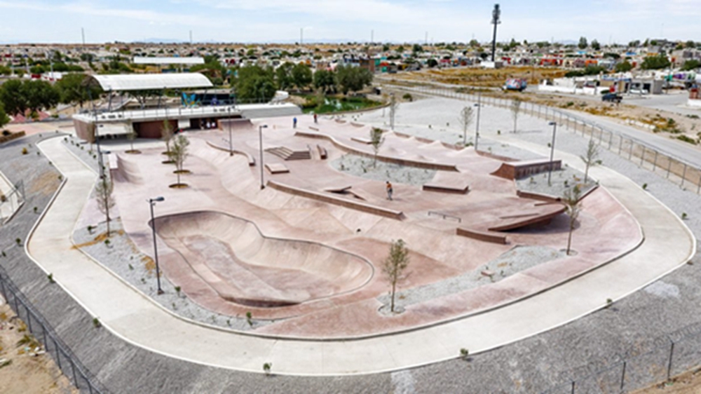 奇瓦瓦沙漠(Chihuahuan Desert)的沙丘,为华雷斯市(Ciudad Juarez)奥林特公园(Oriente Park).的新溜冰场起伏的粉红色混凝土景观提供了借鉴。