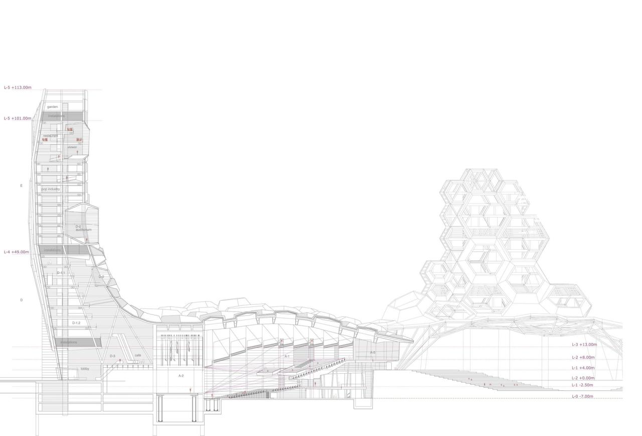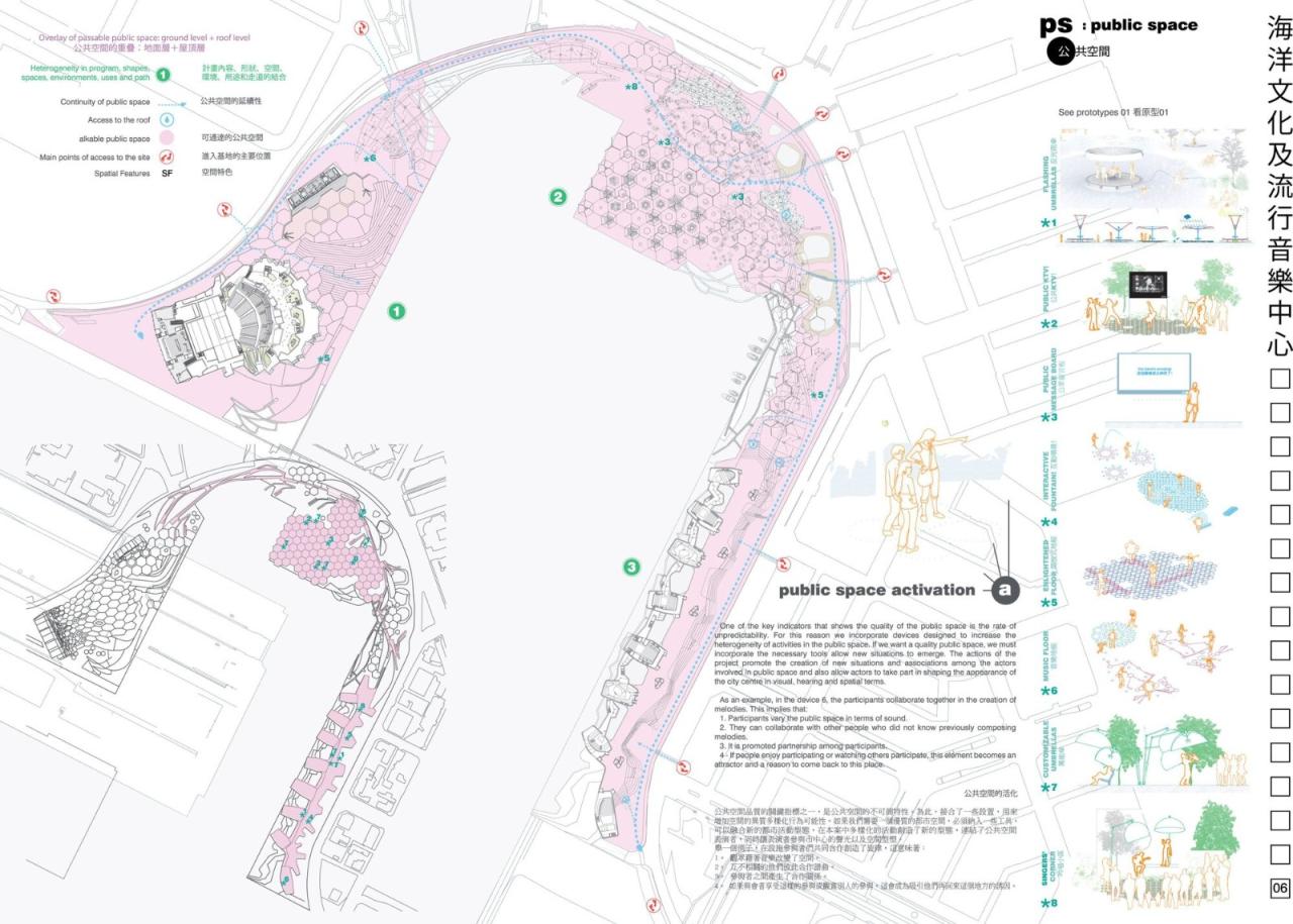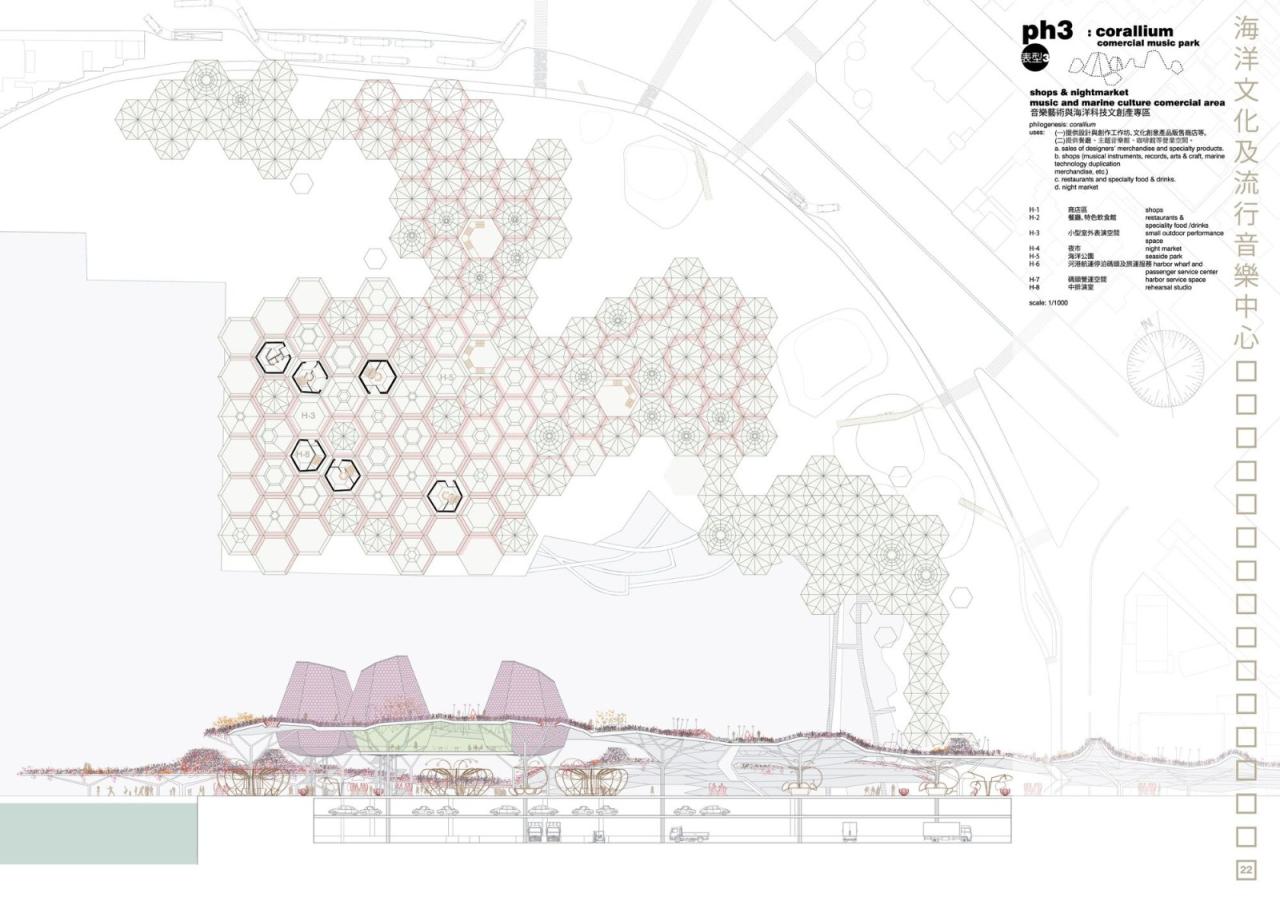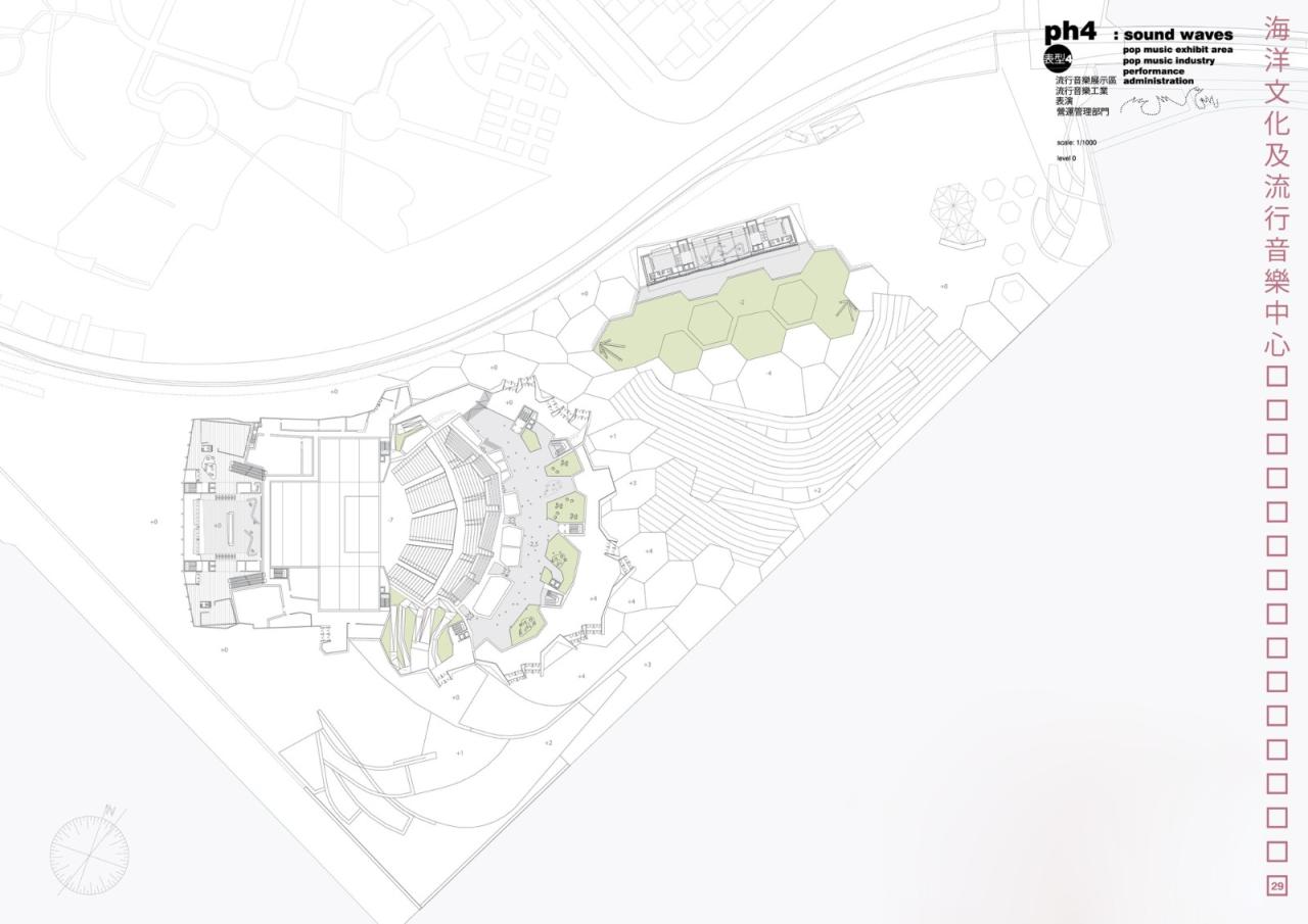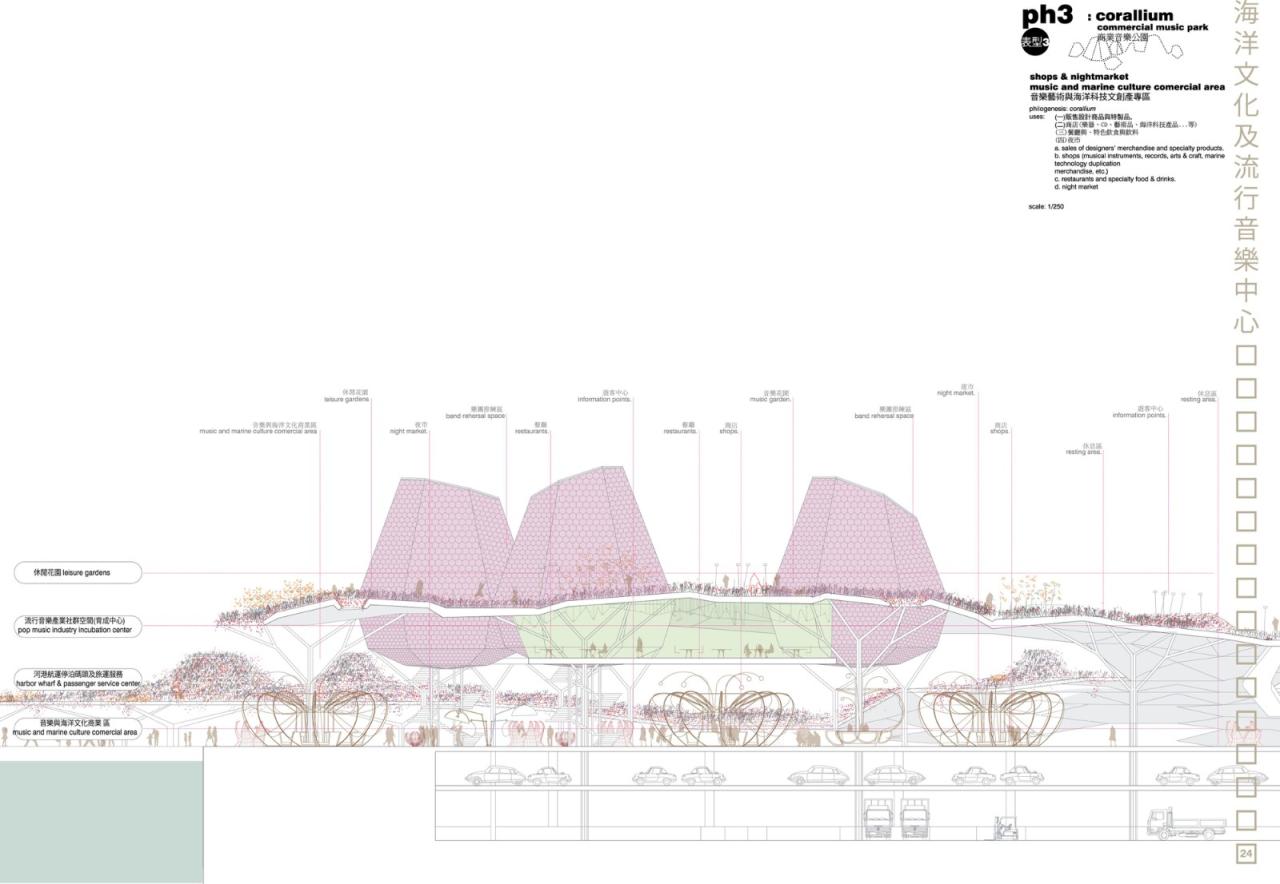 市议会、文化部和台湾政府为赋予高雄港区新的文化内涵所做的共同努力,随着专门为流行音乐设立的中心达到了顶峰。流行音乐产业在亚洲这一地区的社会中有着强烈的认同感。台湾由于其历史和地缘政治状况,已经形成了一种独特的风格,许多文化元素共存,其中本土传统也越来越多被宣扬。同样,该项目在标志性建筑之间过滤传统,同时,提出了一个灵活的设计,在这个设计中,不仅可以适应程序,还可以适应用户的文化再利用。