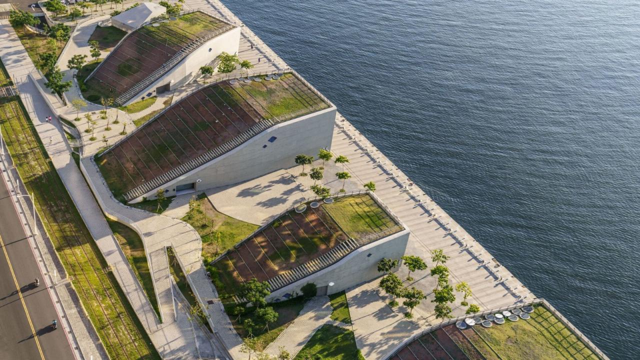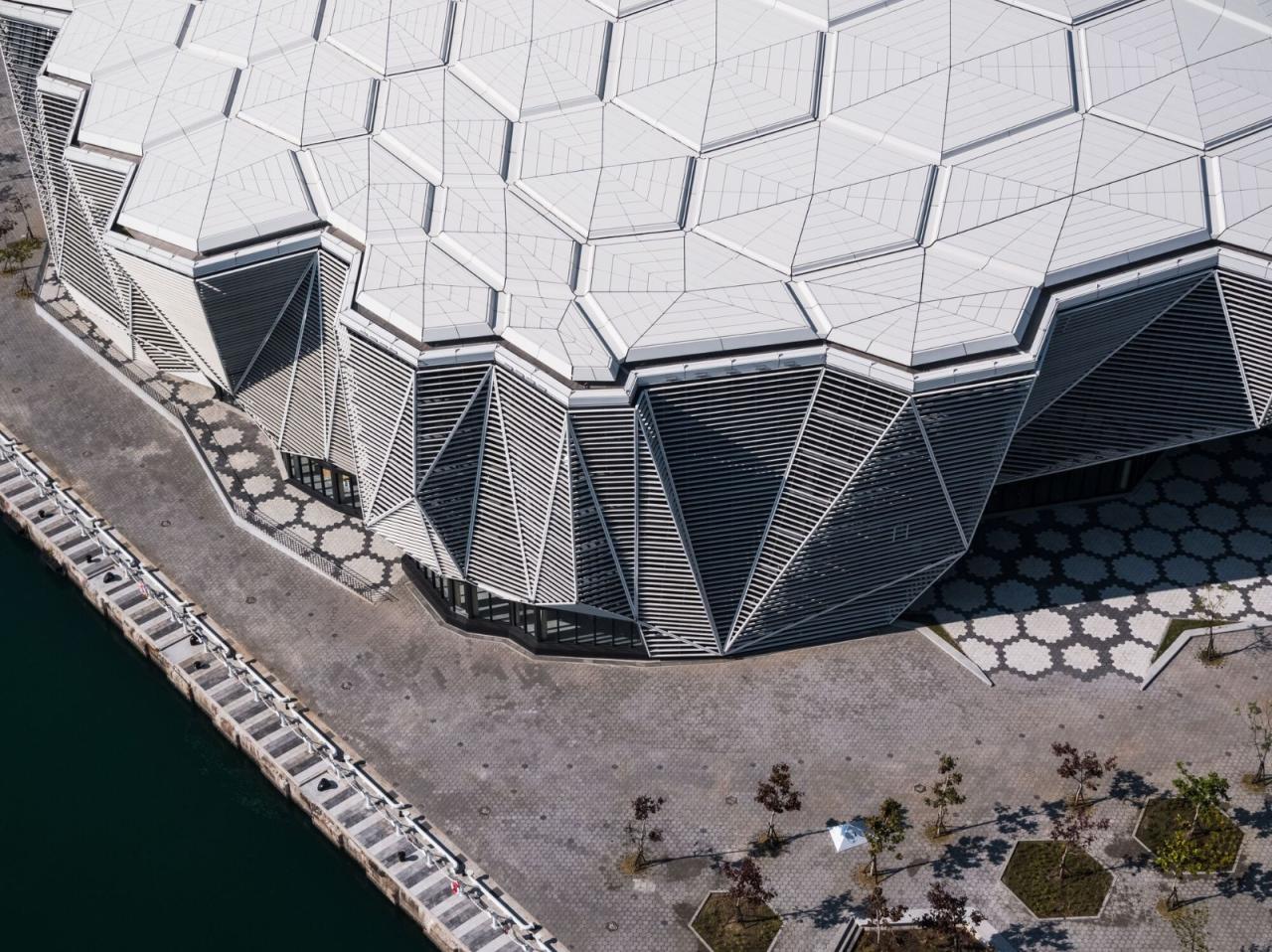 该项目位于台湾南部的港口城市高雄,紧邻爱河口。在这块特殊的飞地上,水是台湾生活的中心轴–在经济上有台湾最大的港口,在城市层面上有爱河在城市的两个部分之间划出分界线,在环境层面上,相对湿度在60%到80%之间–流行音乐中心提出了一个从海底拯救的几何景观。泡沫、珊瑚、海草、海浪和水生动物被安排在表面,并专门用于特定用途,因此每件作品都表现出自己的个性和形式上的挑战,同时,也被整合到一个共同的生态系统中。