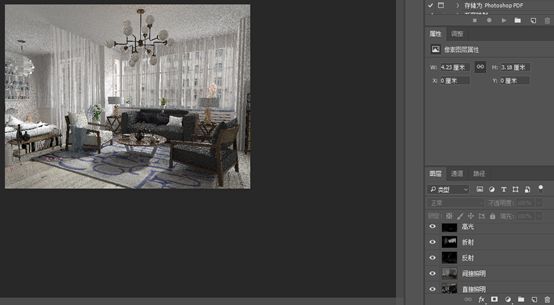这样做的优点就是现在可以单独的对某一个层在PS里面进行单独调节了,比如提亮直接照明层等等