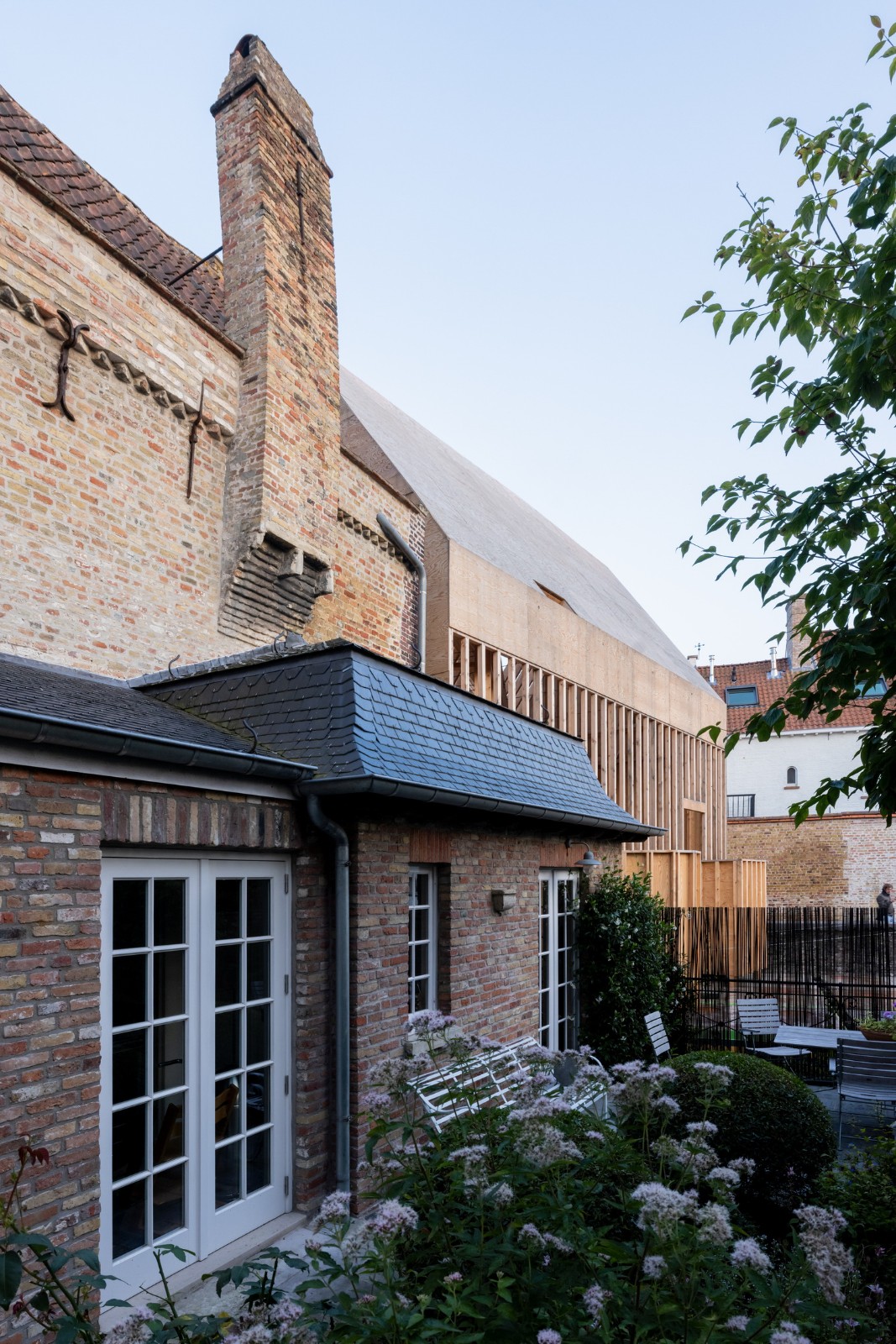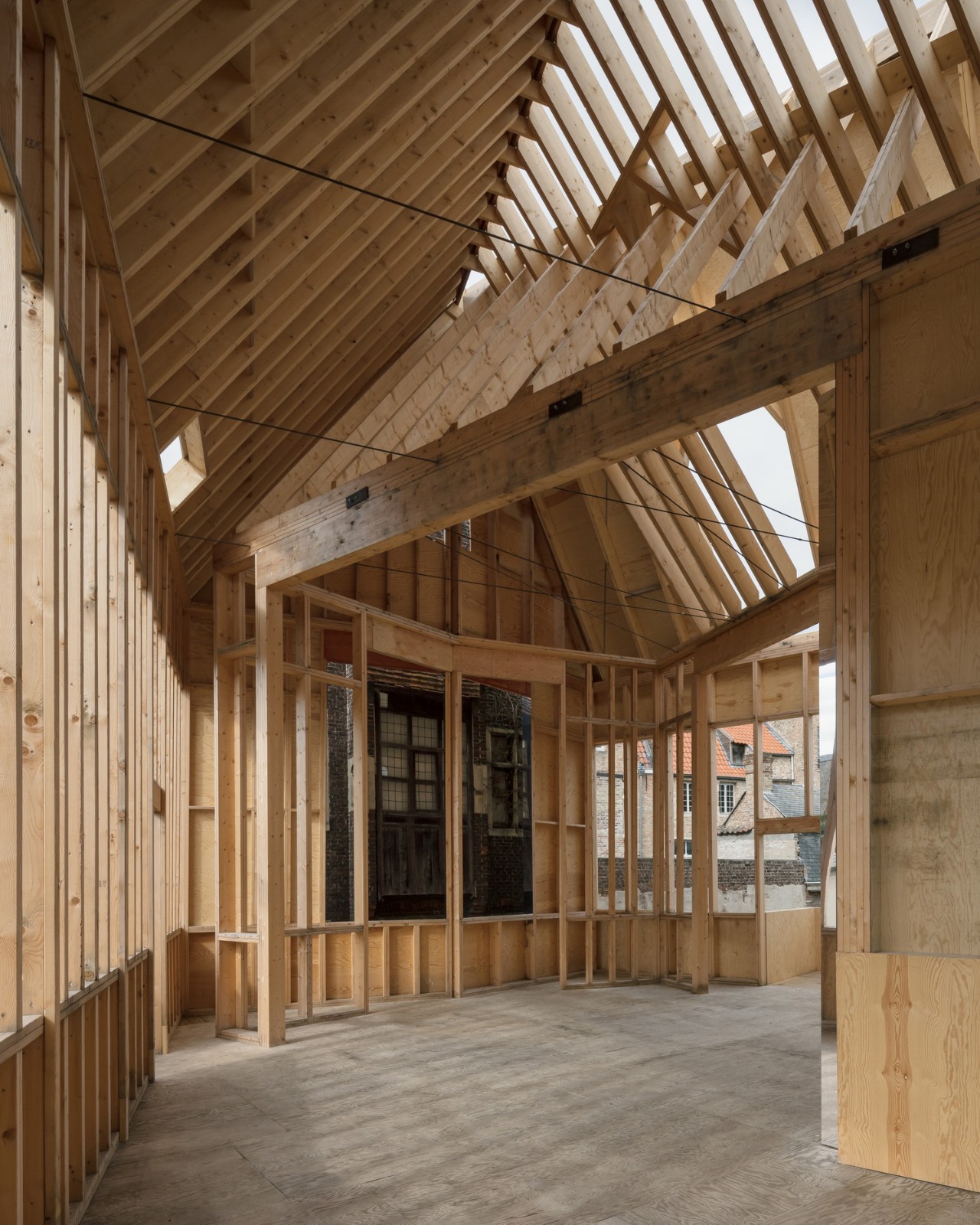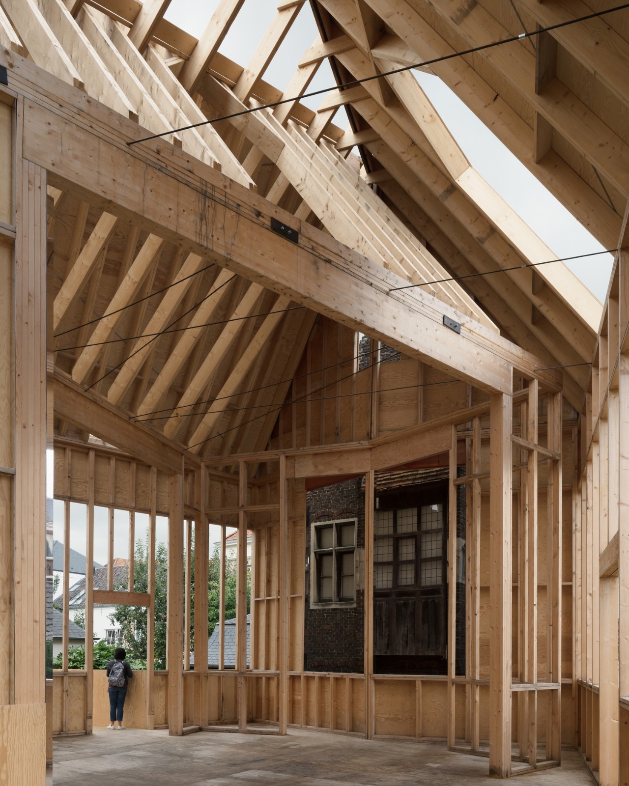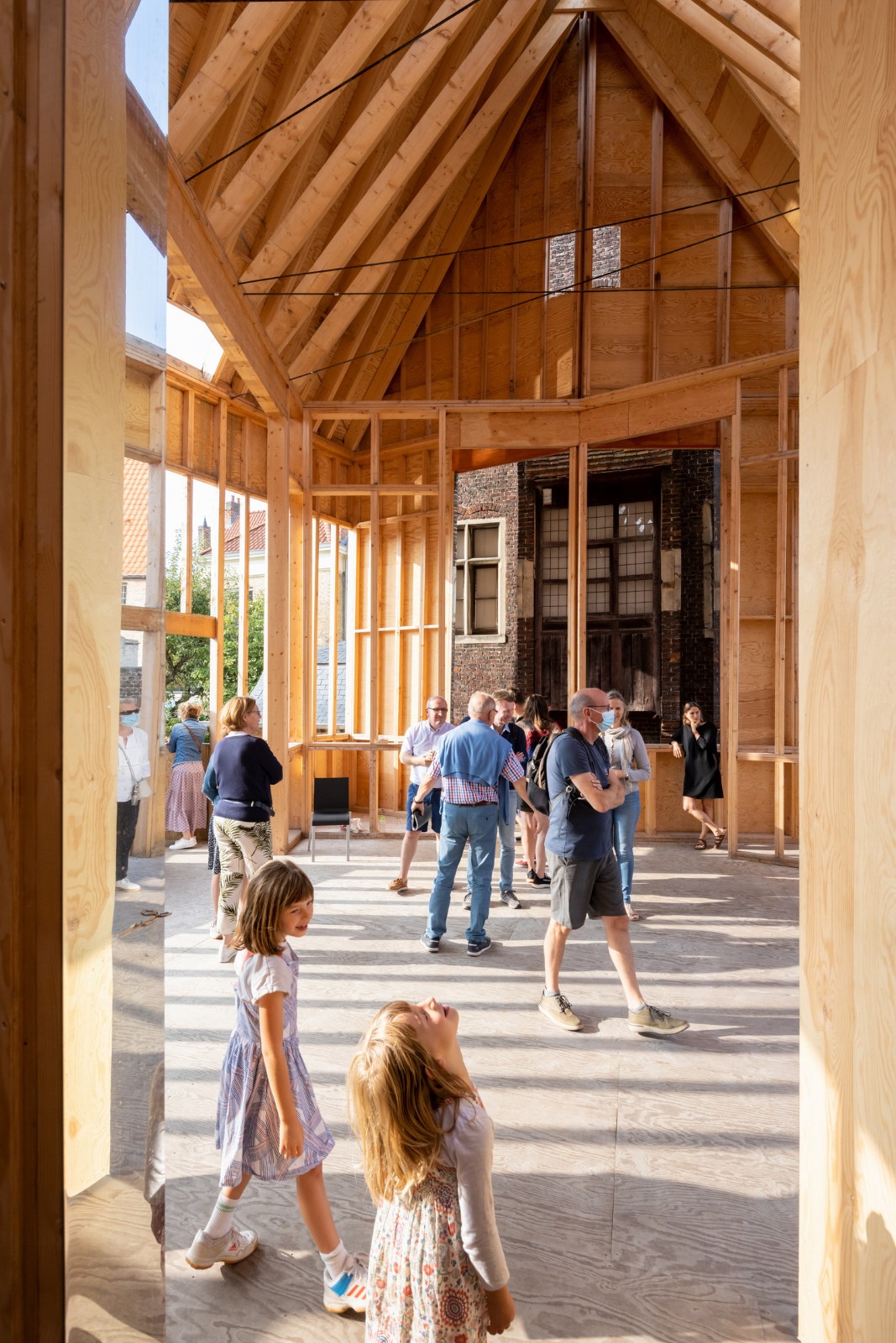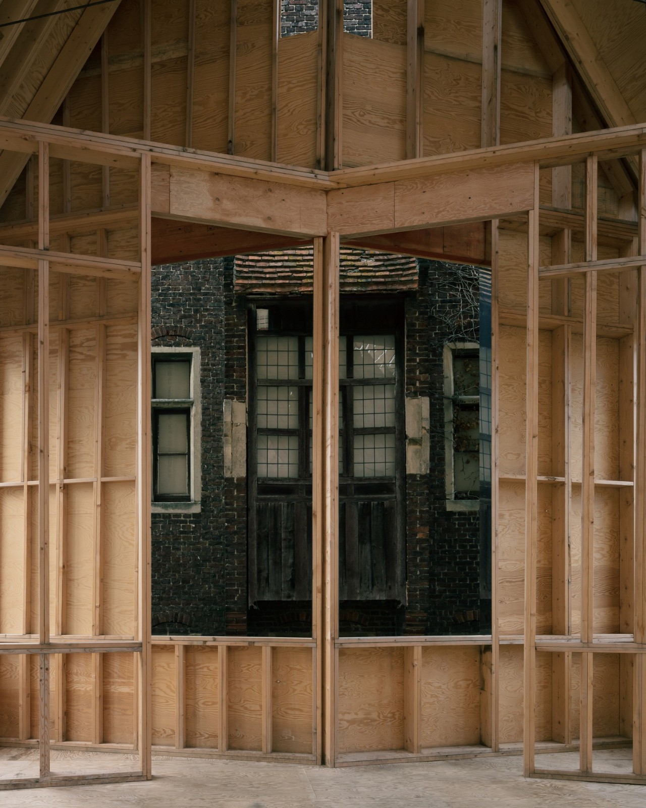 Jon Lott / Para Project 完成的布鲁日双联画展亭是2021布鲁日三年展 TraumA 的一个临时展亭,位于比利时的布鲁日地区。展亭主要用作三年展的活动空间。三年展的项目意在解决城市的创伤问题。该展亭是今年深秋在城市内开放的几个国际委托项目的其中一个。