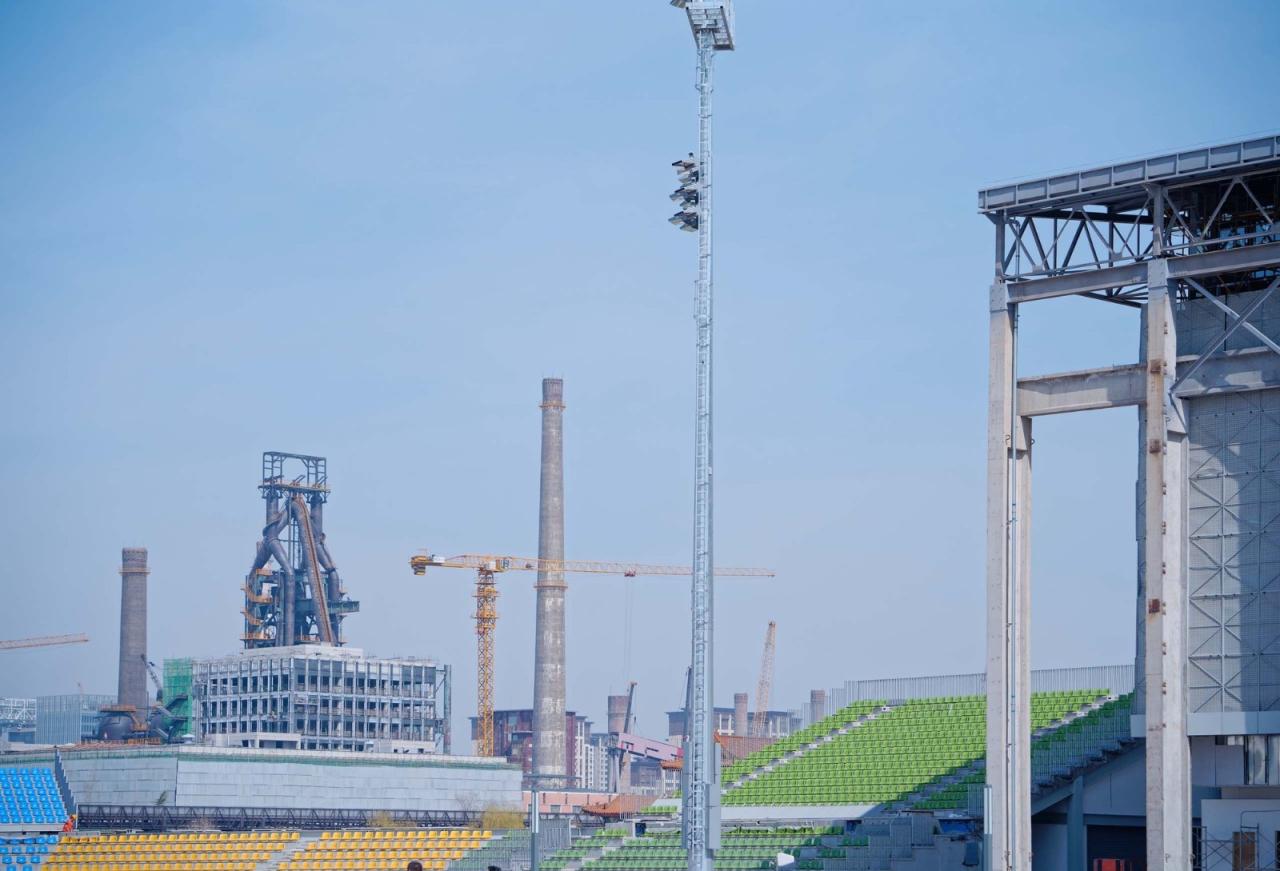 首钢工业园区改造是中国北方最具雄心壮志的工业遗产改造项目,旨在让这座百年历史的钢厂回归市民生活,使城市与永定河重新连接起来,并恢复自然环境,对城市地区影响范围达10km²。整个项目于2010年左右启动,计划在2030年完成,包括一系列适应性再利用和能源转换项目,以体育、休闲、文化和其他公共项目为引擎。作为北京2022年冬奥会北京赛区的场馆分区之一,首钢园区及京能园区包含1个竞赛馆和5个非竞赛场馆。首钢滑雪大跳台是其中唯一的竞赛场馆,它将举办北京2022年冬奥会的单板滑雪及自由式滑雪大跳台(男子、女子)比赛,产生男女共4枚金牌。