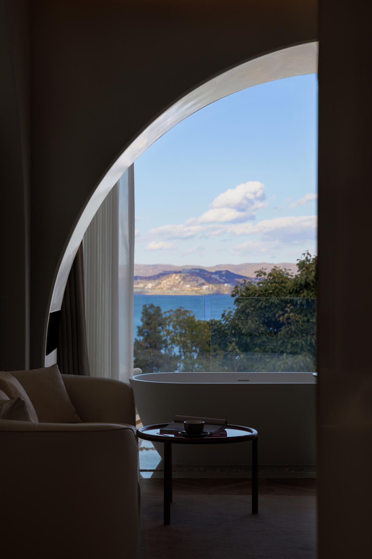 洱海蜿蜒曲折的海岸线像浪漫主义之歌的五线谱,沿着海岸线追逐山海光影是游览大理的最佳体验之一。以山为屋,以海为庭;将山海的自然关系与体验关联到建筑整体空间的设计上,运用如同海岸线的曲线形态来组织建筑与环境的关系,并营造放松休闲的度假感。