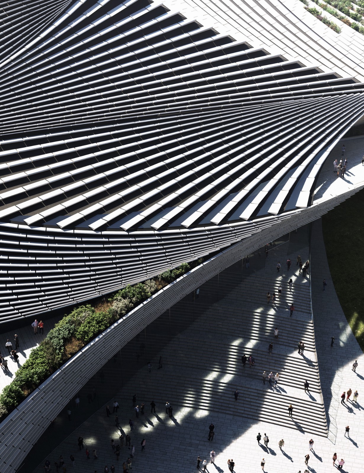 这座城市的最新地标CAMERIMAGE电影中心是对电影的赞颂,并且它也将聚集与世界电影业相关的人们。电影和建筑作为重要且普遍的表达形式,也是娱乐的来源和强大的媒介。这两个领域都创造了无数的视觉艺术作品,并通过移动图像或造型空间传达了思想、故事、感知、感受、美学或氛围等。我们的目标则是在托伦欧洲电影节 CAMERIMAGE 电影中心的新设计中,捕捉并具象化这些横跨各个领域的可利用设计元素。——隈研吾建筑事务所
