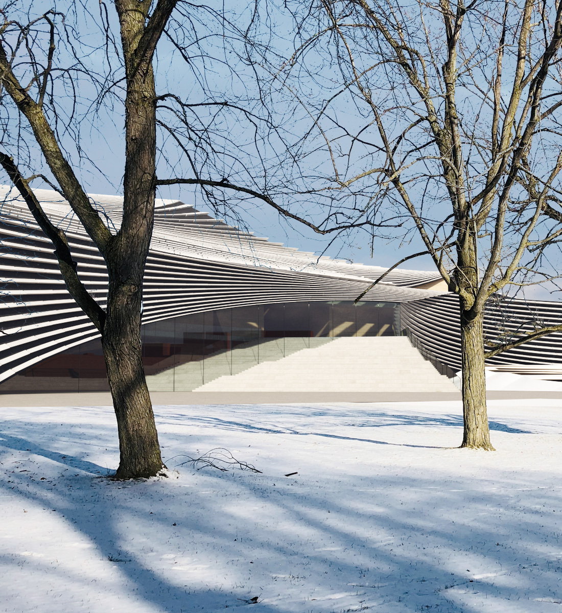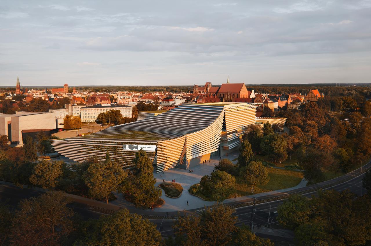 隈研吾建筑事务所在欧洲电影中心CAMERIMAGE大楼设计竞赛中,为波兰托伦市中心打造了一个全新的地标建筑,以此颂扬电影与建筑,并将两者融合、展现它们作为艺术“共通的表达形式”的设计。由隈研吾建筑事务所设计的方案获得了竞赛的第二名,该设计通过有机结构形式中的动态韵动,展示了隐喻于建筑之中的“电影谢幕”,并为艺术家、游客和当地人民提供了一个充满音乐和视觉体验的独特空间。